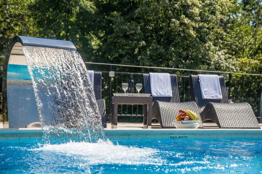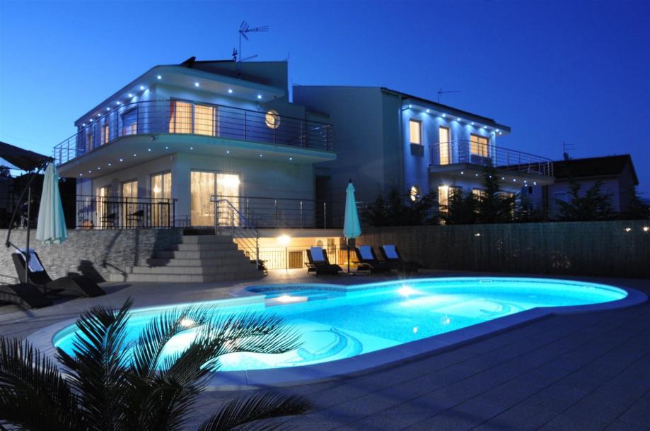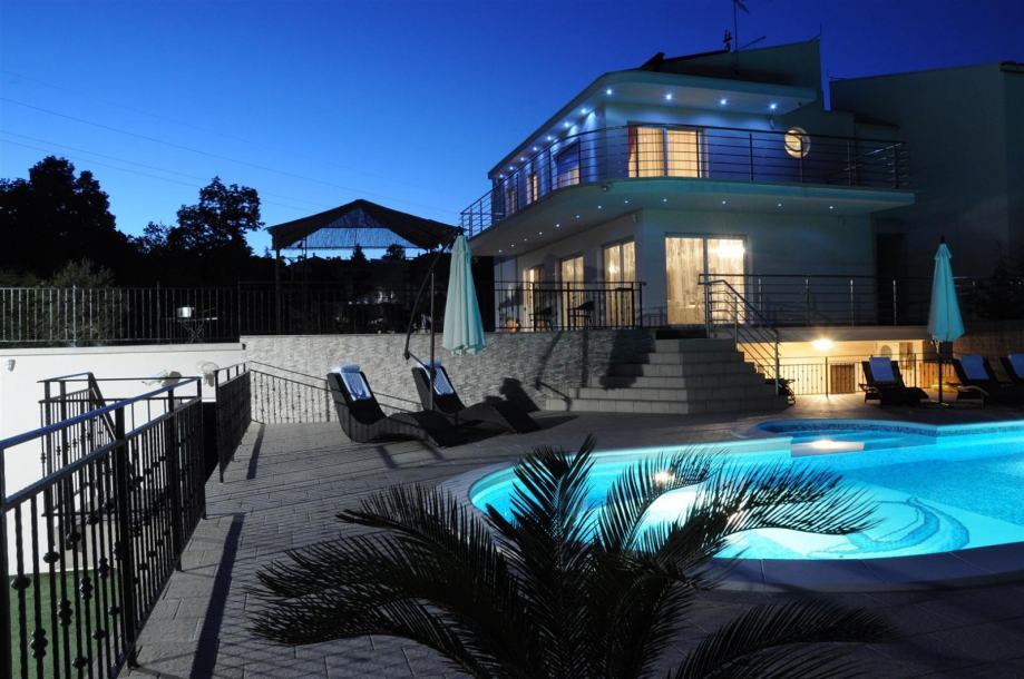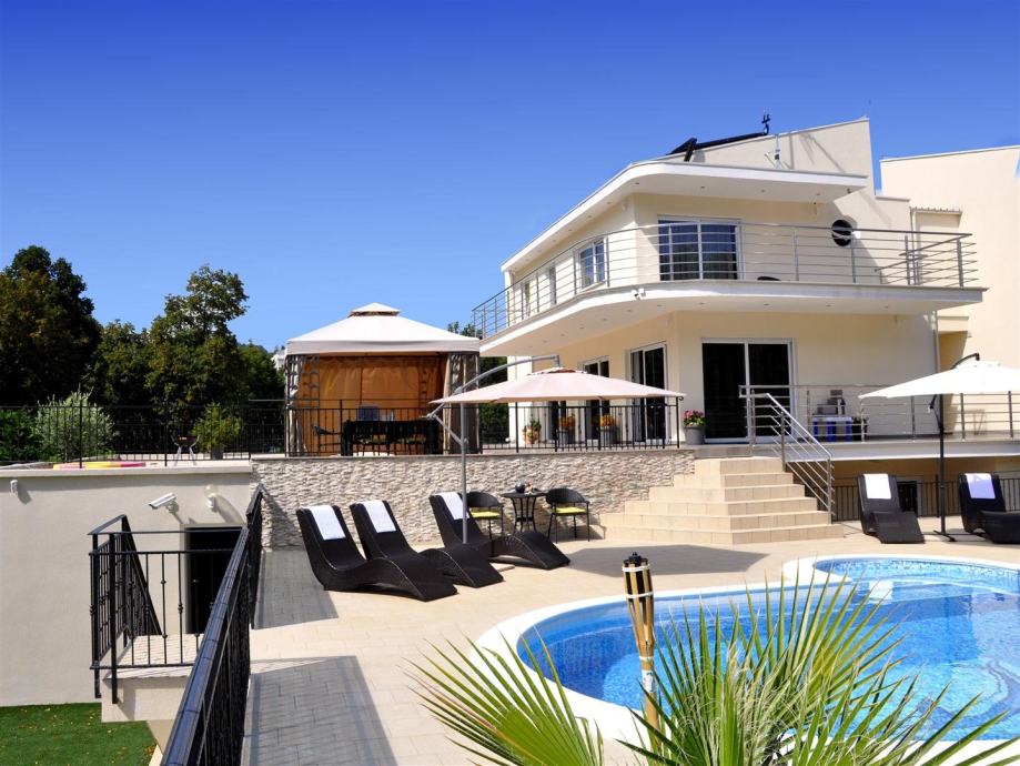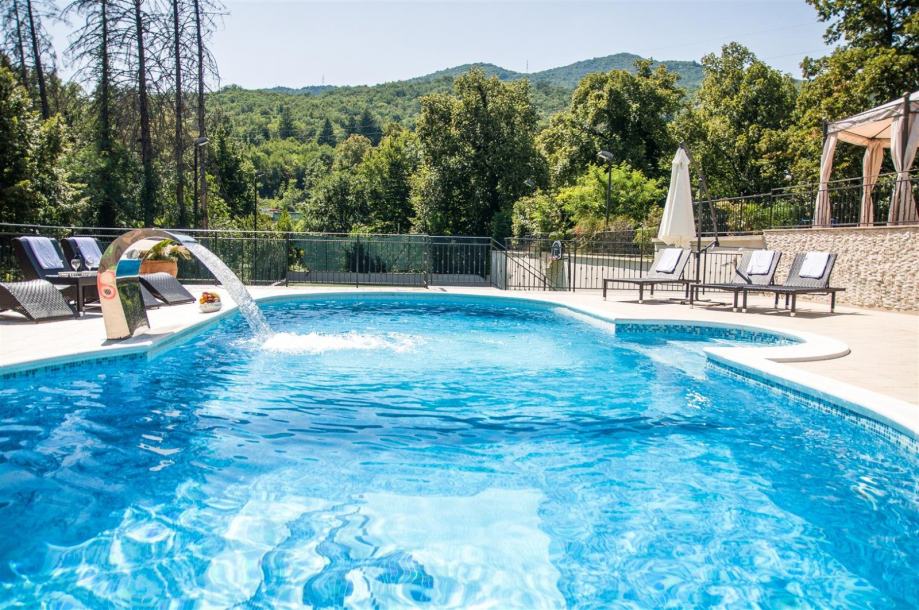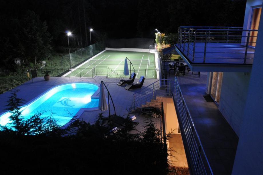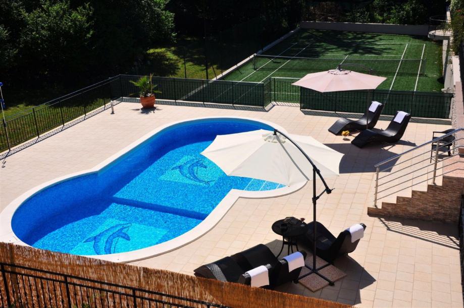 U vrtu se nalazi prostrani grijani 28 do 30C bazen (50 m2) prostor za sunčanje i odmor kao i vanjski tuš, natkrivena sjenica sa roštiljem. Villa ima vlastiti teren za tenis (umjetna trava) sa rasvjetom, kao i mini wellness sa hidromasažnim bazenom za 5 osoba, te finskom saunom i tuševima, kao i odvojeni wc. Villa ima alarm i video nadzor, a nalazi se u mirnom okruženju nadomak prekrasne Opatije.