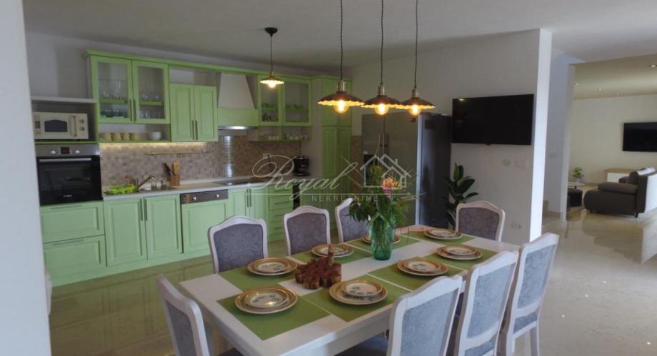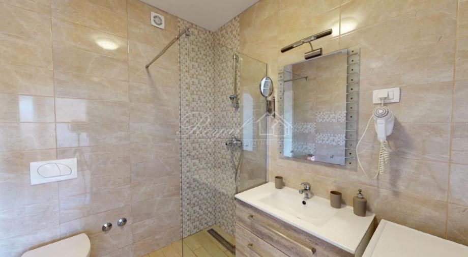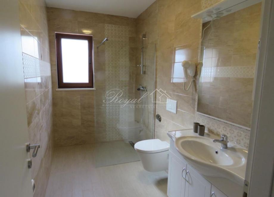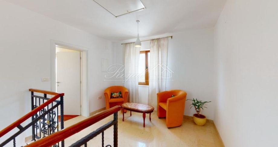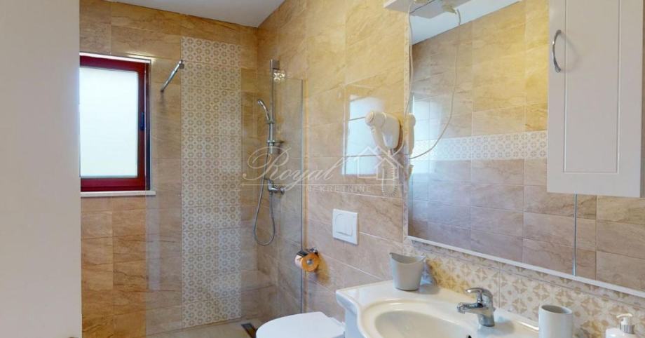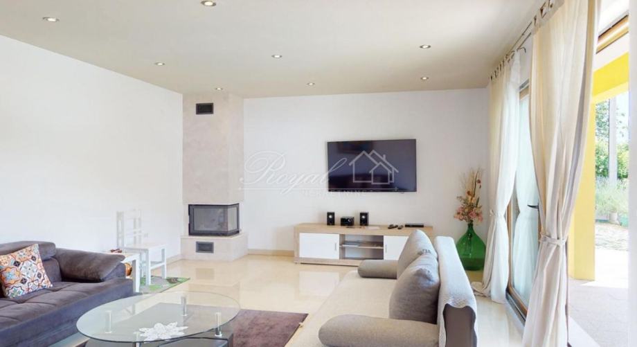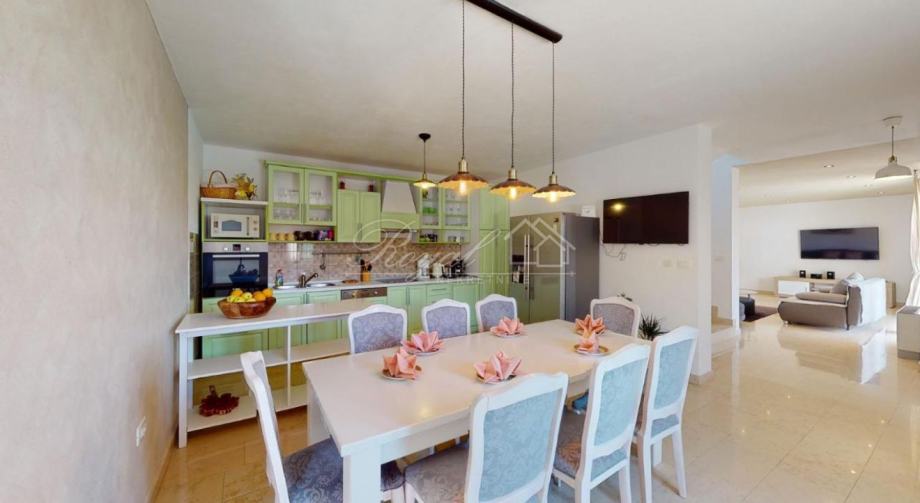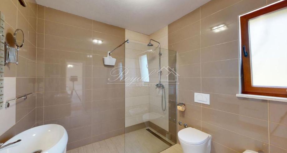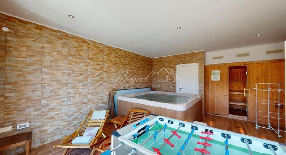Ova vila izgrađena je 2018. godine radi se o objektu od 240m2 stambene površine na kat. U prizemlju se nalazi prostrani dnevni boravak sa izlazom na bazen, iz dnevnog boravka se ide prema kuhinji s blagovaonom. Treća prostorija u prizemlju je prostor za druženje i zabavu s jacuzzijem te finskom saunom.