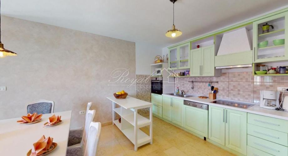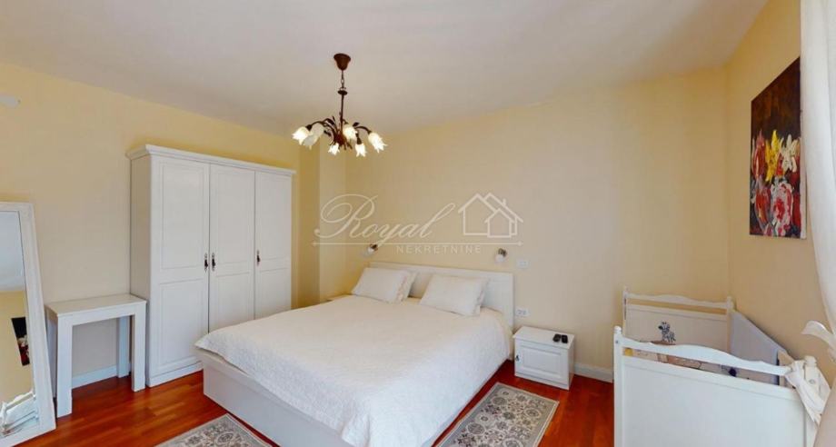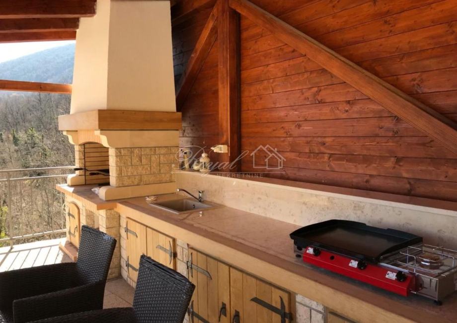 U uređenje ove kuće uloženo je puno truda, vremena i volje. Za okućnicu korišten je vrhunski kamen, a isto tako u interijeru uz drvo u spavaćim sobama. Svaka prostorija ima svoju klimu i kuća uz kamin ima centralno grijanje + podno grijanje. Važno je napomenuti da je bazen grijani infinity pool.