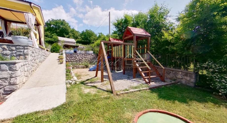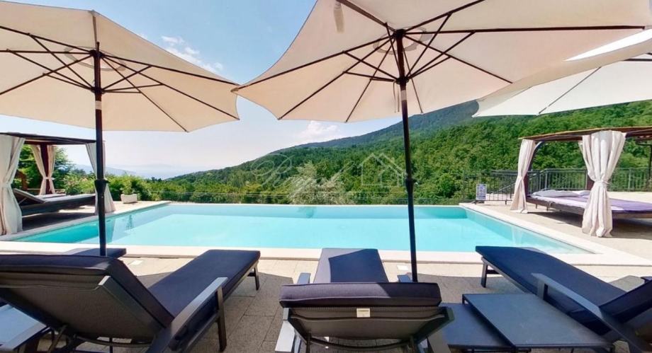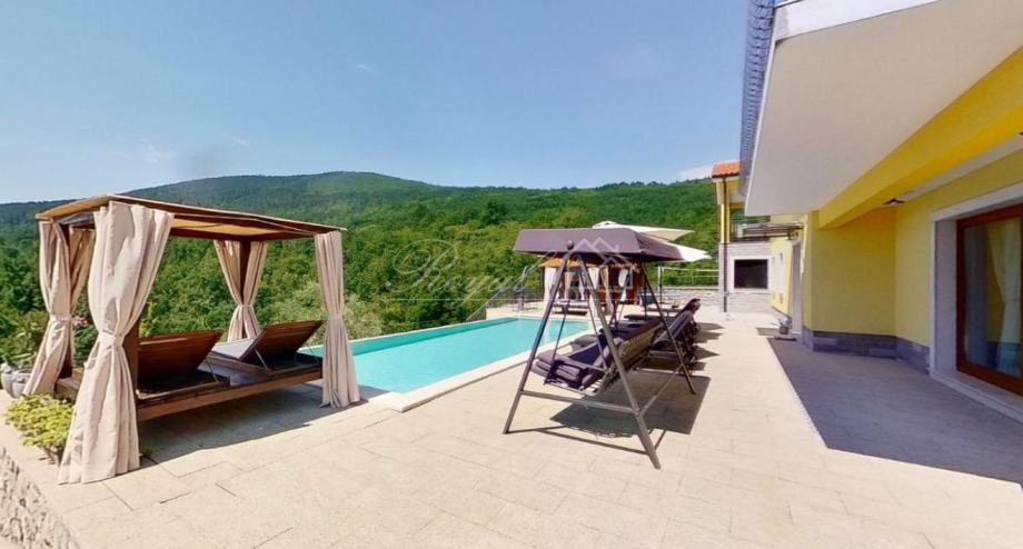 Izdavajo prekrasnu vilu na osami s okućnicom od skoro 1000m2 sa bazenom, ljetnom kuhinjom, mini golfom te dječjim igralištem okružena zelenilom, i pogledom na Kvarnerski zaljev.