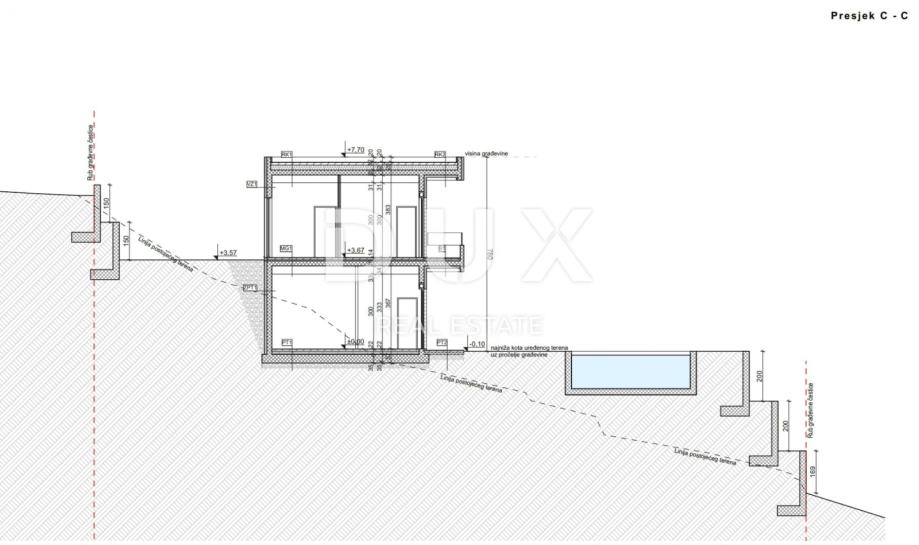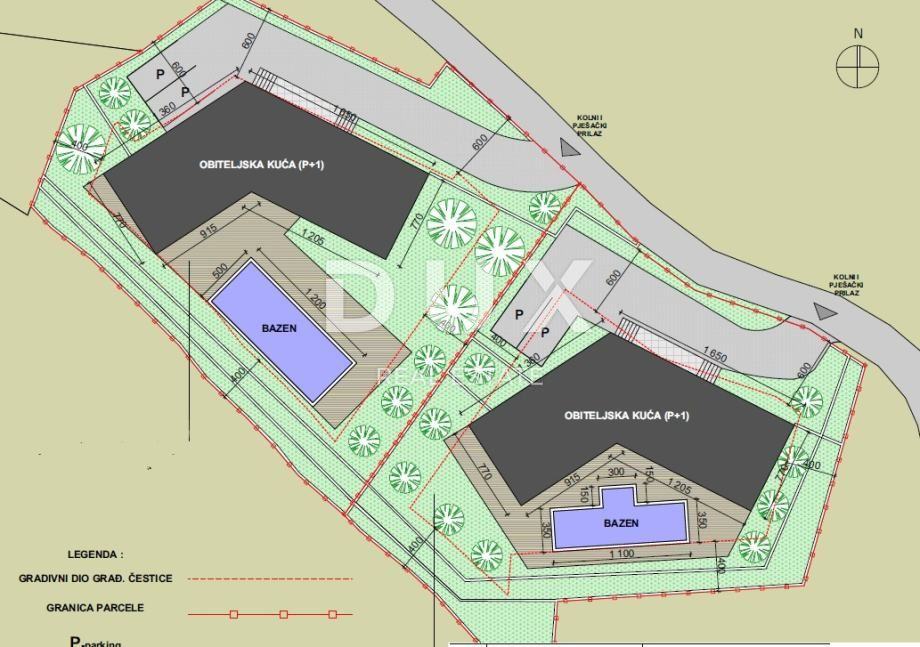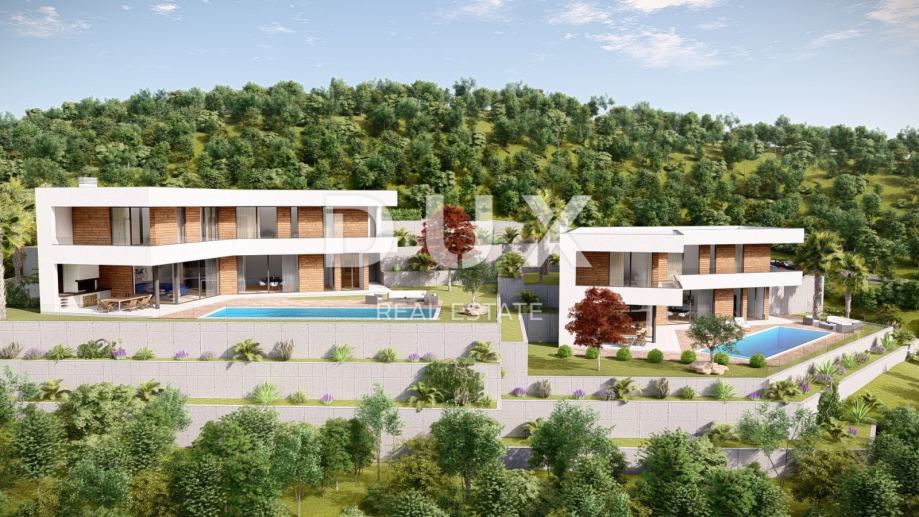 Na prodaju je građevinsko zemljište površine 1920 m² u Mošćeničkoj Dragi s pravomoćnim građevinskim dozvolama za izgradnju dvije luksuzne vile s bazenom. Zemljište dolazi s kompletnom projektnom dokumentacijom, plaćenim komunalnim i vodnim doprinosima, što omogućava trenutni početak gradnje.