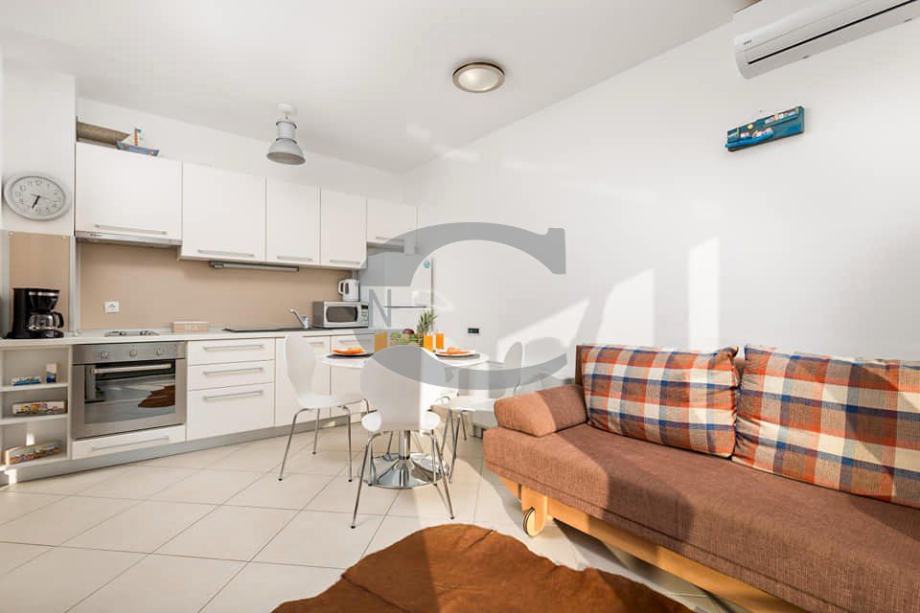 Nalazi se u novoizgrađenoj stambenoj zgradi, sastoji se od predsoblja, open-space kuhinje s