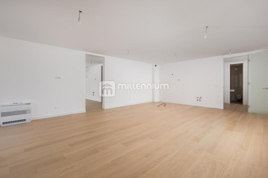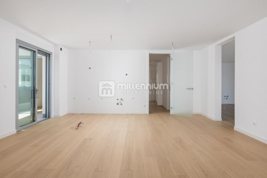 Ukupna stambena površina iznosi 197.23m2, dok pet prostranih balkona, ukupne površine 64.16m2, omogućuje uživanje u svježem zraku i predivnom pogledu na more. Stan također ima dva garažna parkirna mjesta i jedno vanjsko parkirno mjesto, kao i pravo korištenja zajedničkog bazena, savršeno za ljetno osvježenje.