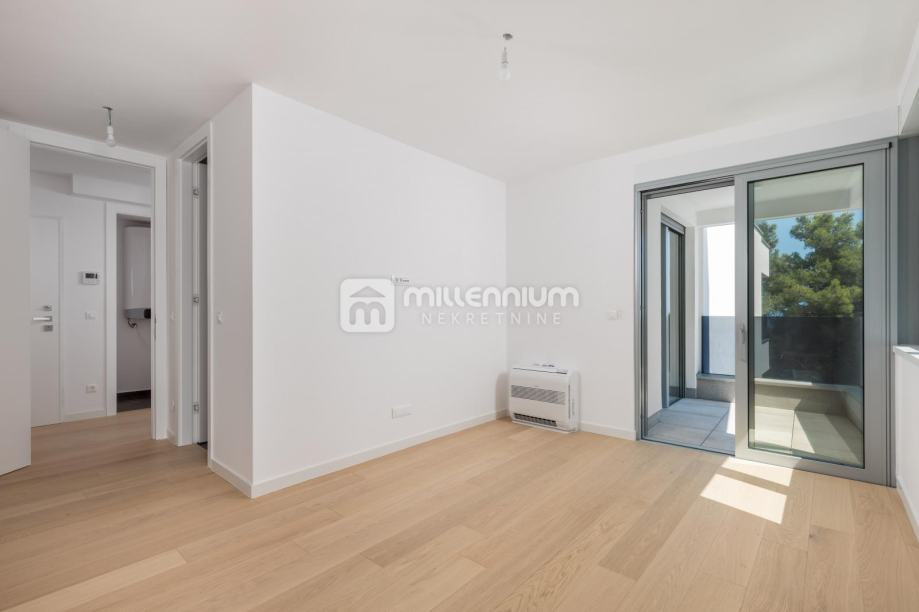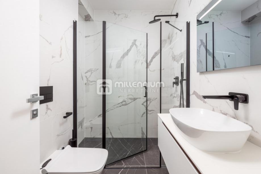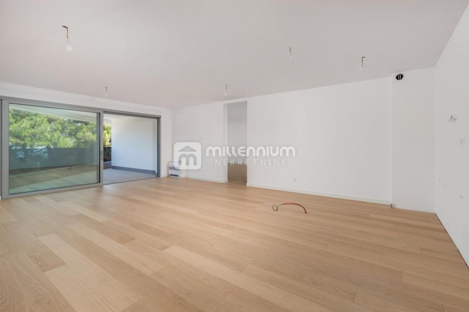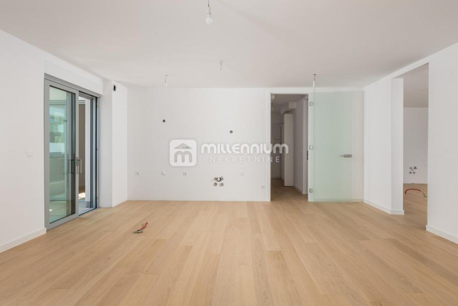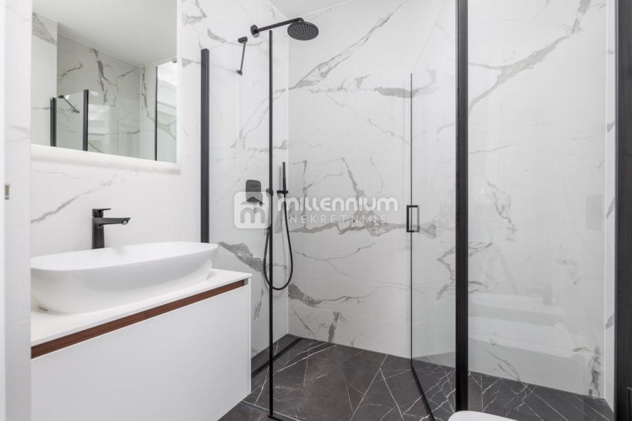 Ukupna stambena površina od 197.23m2 upotpunjena je s pet balkona, ukupne površine 64.16m2, s kojih se pruža prekrasan pogled na more. Ovaj stan nudi i dva garažna parkirna mjesta te jedno vanjsko parkirno mjesto, uz dodatnu pogodnost korištenja zajedničkog bazena.