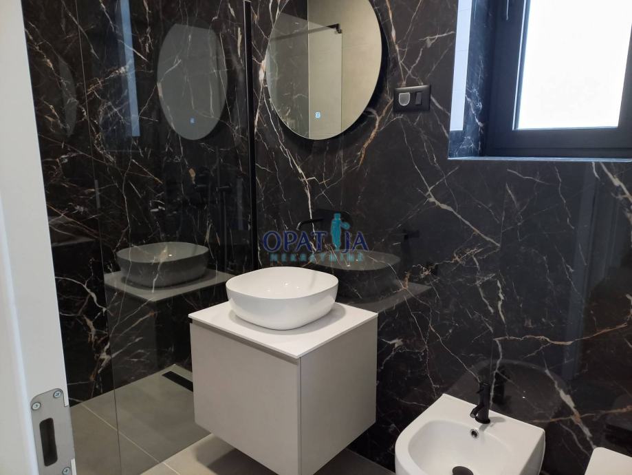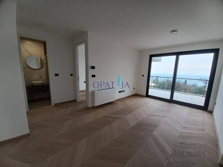 Stan se sastoji od ulaznog prostora, kuhinje, blagovaone i dnevnog boravka otvorenog koncepta s velikim staklenim stijenama s izlazom na balkon s kojeg se pruža prekrasan pogled na Kvarner. Zatim ima tri spavaće sobe od kojih jedna ima svoju kupaonu i garderobu s izlazom na balkon s pogledom, kupaone s podnim grijanjem, WC-a i ostave.