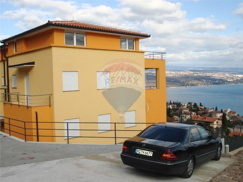 OPATIJA - NOVOGRADNJA - Stan u visokom prizemlju 2s+db, 96 m2 sa garažom i velikom terasom na predivnoj lokaciji sa koje puca otvoren pogled na cijelu Opatiju i njenu rivijeru. Stanu pripada i 200 m2 okućnice na kojoj je moguće izgraditi bazen. Kompletno je namješten veoma kvalitetnim talijanskim namještajem. Oprema stana je također vrlo kvalitetna. Stanu pripada i garaža te predgražno parkirno mjesto.