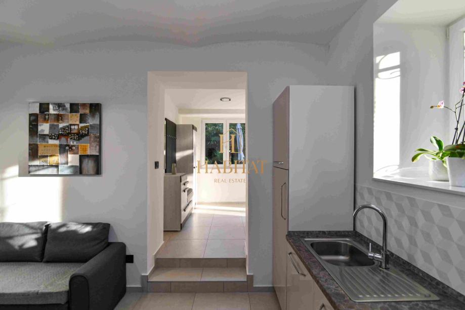 Stan ima zaseban ulaz, a sastoji se od dnevnog boravka, kuhinje i blagovaone, spavaće sobe, kupaone i ostave, te prekrasne terase koja je okružena zelenilom.