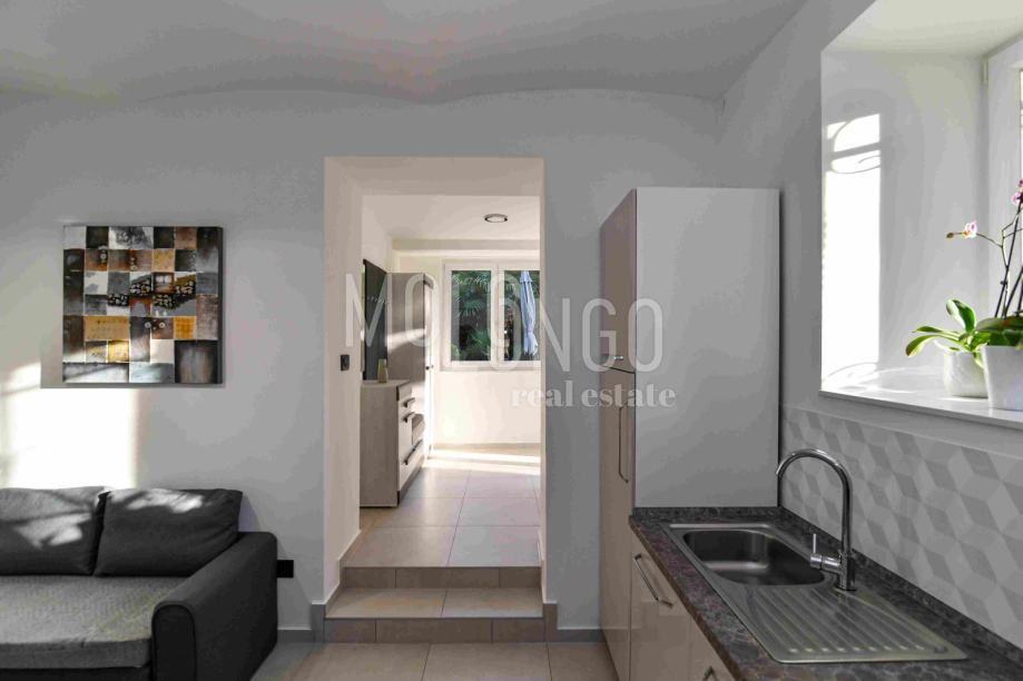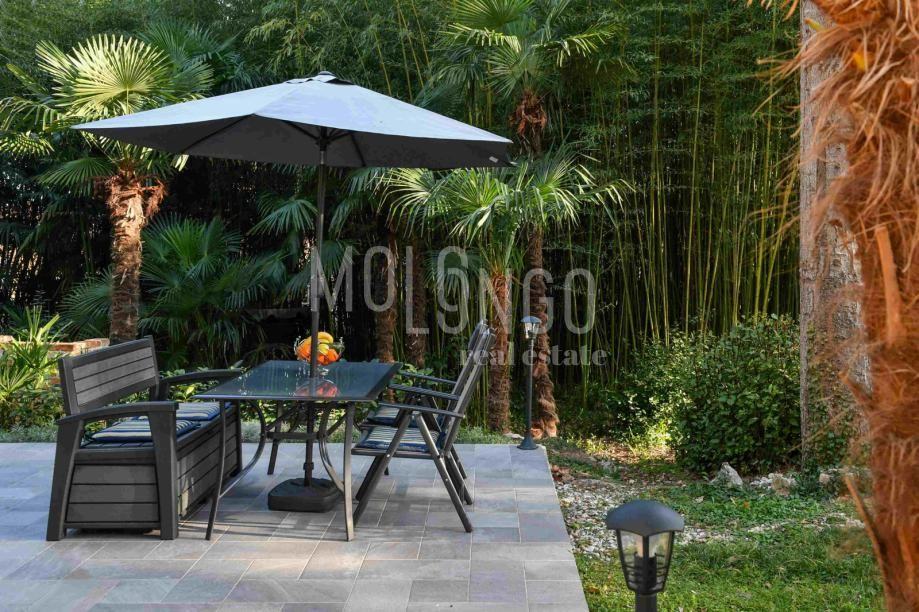 Stanu pripada terasa okružena prekrasnom okućnicom s bambusima i palmama, te izlazom u poznati opatijski park.