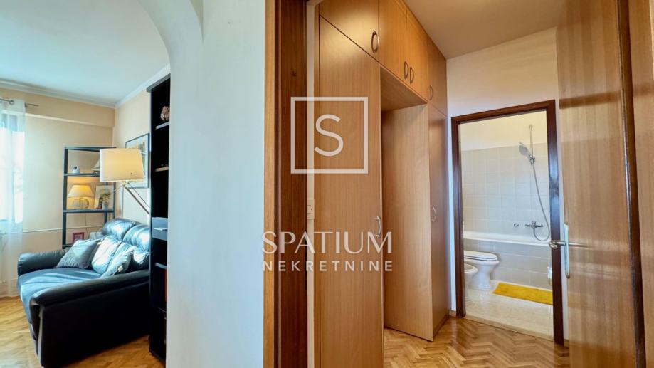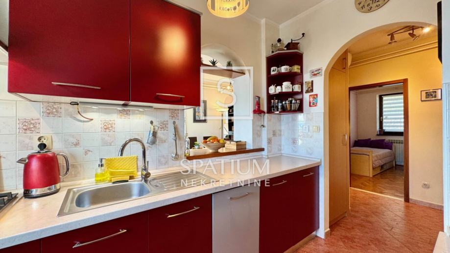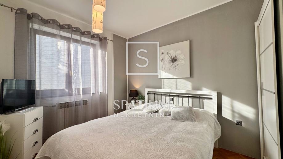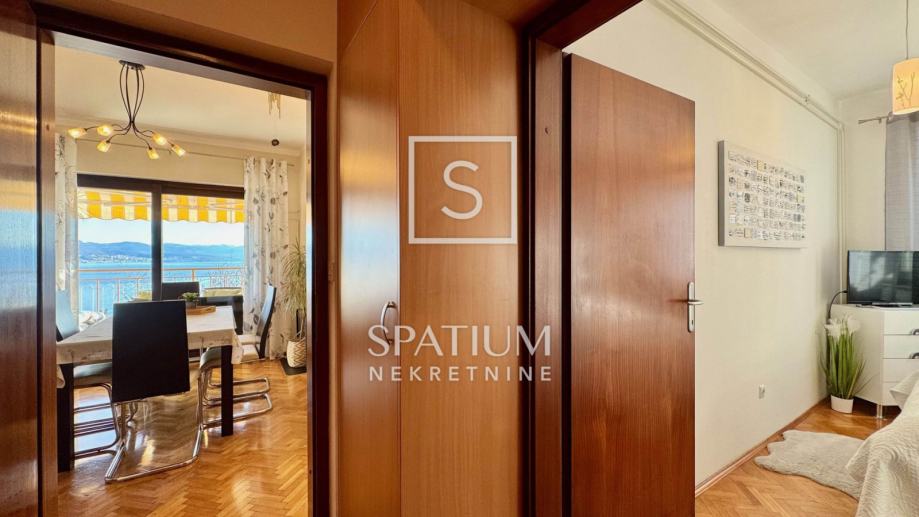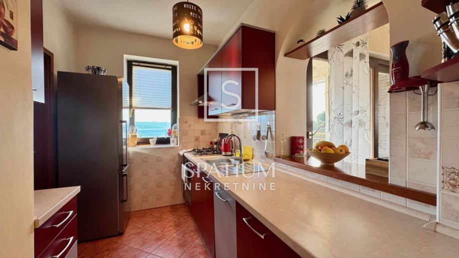 Glavna spavaća soba ima funkcionalno predsoblje s ugradbenim ormarima i zasebnom kupaonicom. Dodatne dvije spavaće sobe su prostrane, a u slučaju potrebe jedna može poslužiti kao ured, studio ili hobi soba. Druga kupaonica nalazi se pored ulaza u kuhinju koja je u potpunosti opremljena. Efikasna plinska ploča i velika radna površina znatno olakšavaju pripremu jela u vlastitom domu. Svaki obrok upotpunjuje i pogled na more koji se pruža iz kuhinje i blagovaonice. Dnevni boravak s brojnim sjedećim garniturama je idealno mjesto za okupljanje obitelji i prijatelja. Iz dnevnog boravka i blagovaonice izlazi se na lođu s koje se pruža predivan otvoren pogled na more.