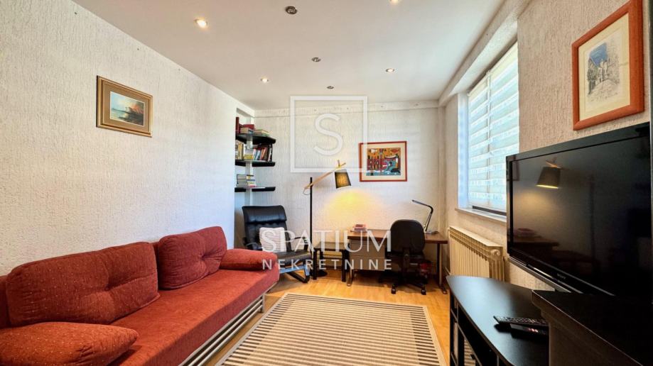 Suvlasnici su u zajedničkom vlasništvu vrta pogodnog za roštiljanje i okućnice na kojoj parkiraju. Objekt je pod video nadzorom. U prizemlju je drvarnica. Provedeno je centralno grijanje na pelete i postoje još dva klima uređaja. Stan se prodaje namješten. Nekretnina ostavlja snažan dojam i vrijedna je pažnje onih u potrazi za prostranim i useljivim stanom na ovoj lokaciji.