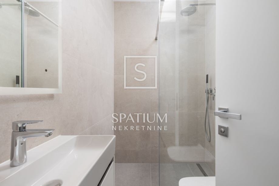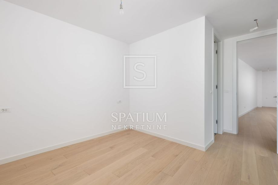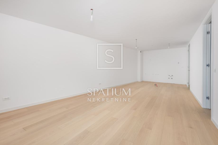 Sastoji se od dvije spavaće sobe, dvije kupaonice, zasebnog toaleta, dnevnog boravka s kuhinjom i blagovaonicom, balkona (21,06m2) i jednog garažnog parking mjesta.