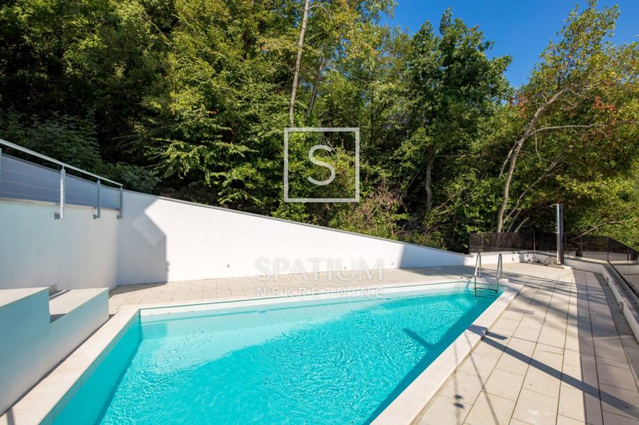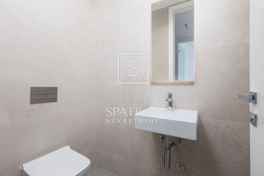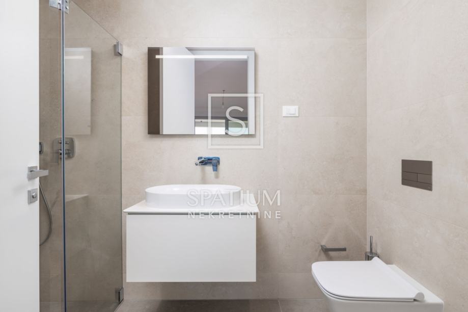 Opremljen je visokokvalitetnim materijalima (keramika, sanitarije, parketi, alu stolarija) kao i podnim grijanjem, klima uređajima, video nadzorom...