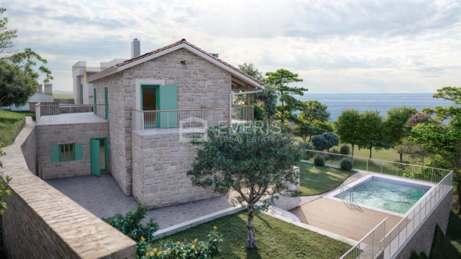 Opatija okolica,Bregi, dvojna kuća 94 m2 s bazenom i panoramskim pogledom