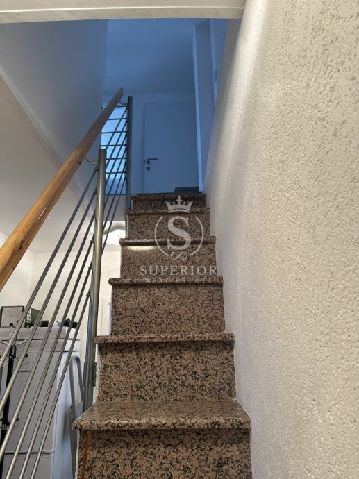 Smješten u manjoj stambenoj zgradi, stan se prostire kroz dvije etaže – drugi kat i potkrovlje – te nudi odličan raspored, svjetlost i osjećaj doma s notom luksuza.