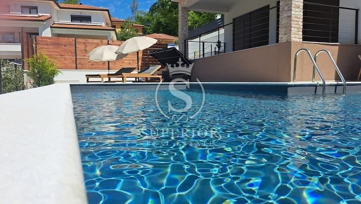 OPATIJA – VEPRINAC: DVOJNA KUĆA, 2 STANA, S BAZENOM I JACUZZIJEM