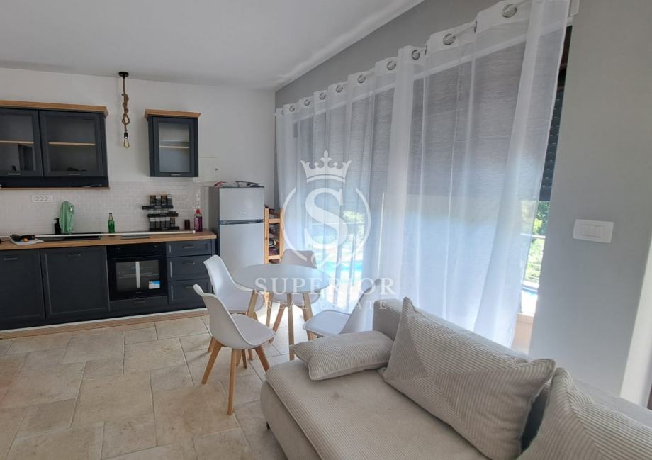 Na uzvisini iznad Opatije, gdje se zrak miješa s mirisima mora i borovine, nalazi se ovo čarobno mjesto – Veprinac. U ovom pitoresknom naselju, gdje vrijeme teče sporije, a svaki pogled donosi mir, prodaje se moderno uređeni dvoetažni stan i zaseban studio apartman u dvojnoj kući s bazenom.