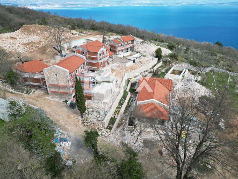 Sve izgrađene ville na ovoj parceli imaju panoramski otvoreni pogled na more, cijeli Kvarnerski zaljev i otoke čak iz prizemlja!