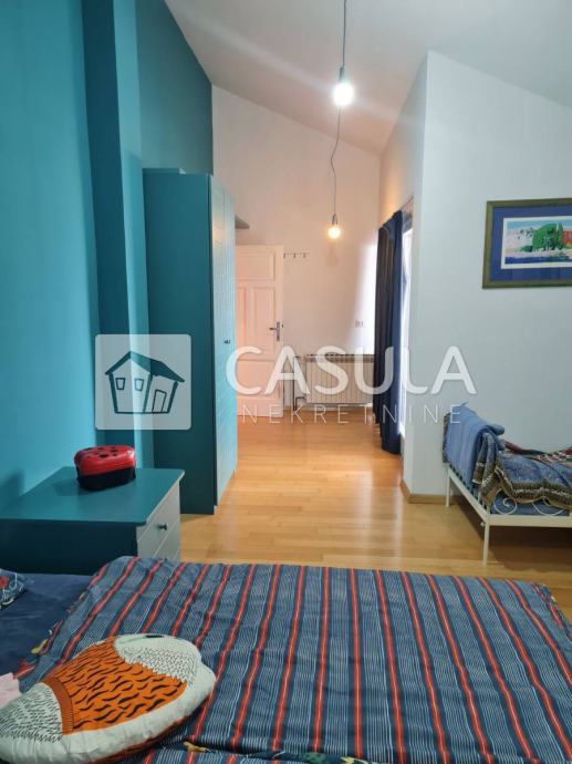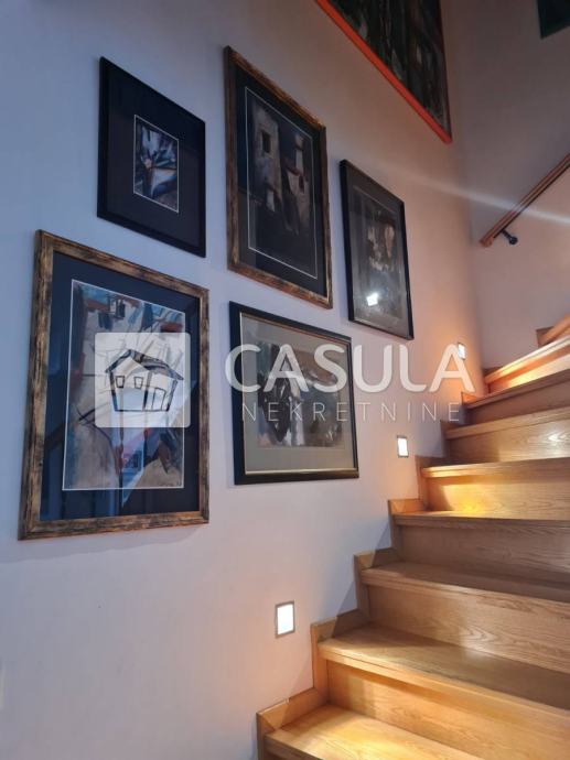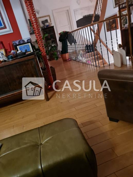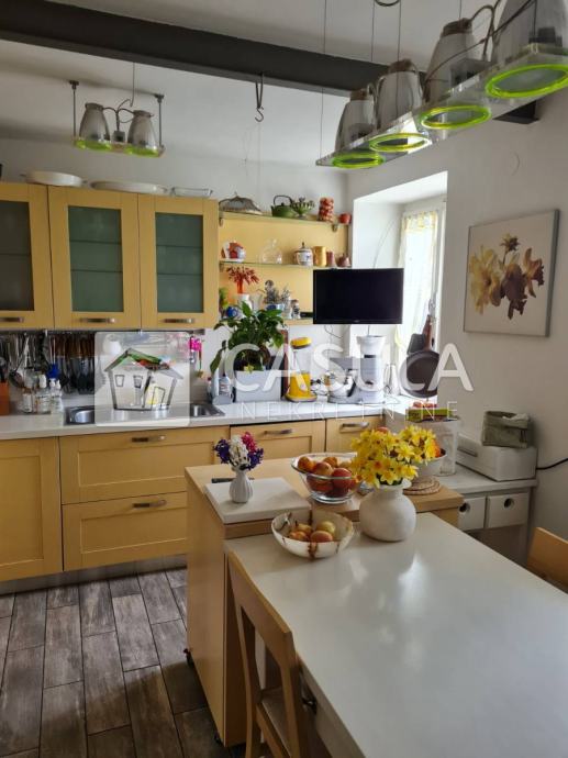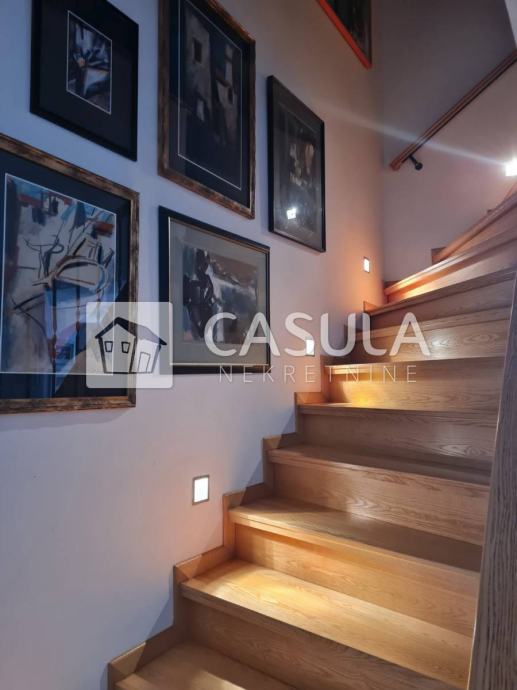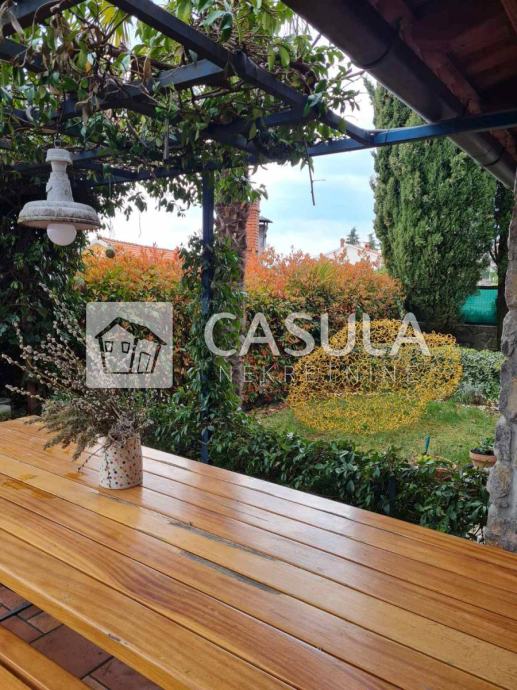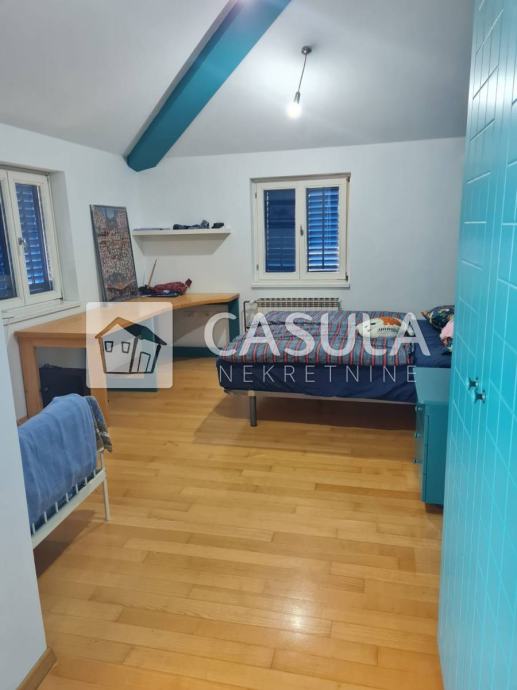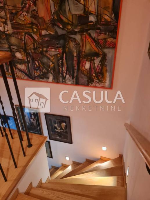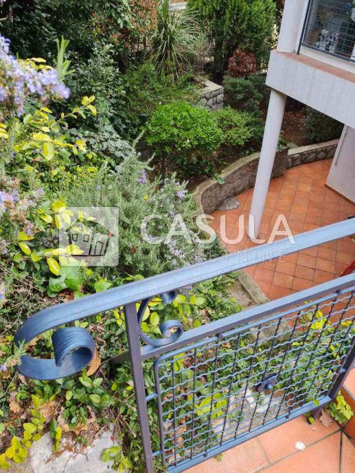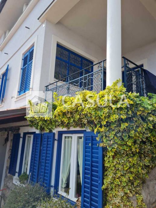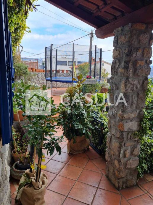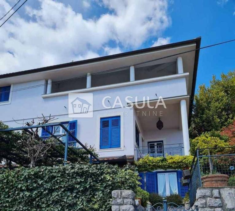 OPATIJA-OKOLICA, obiteljska kuća s lijepo uređenom okućnicom i prekrasnim pogledom na more samo 1200 m udaljena od mora i centra Opatije. Smještena je na tri etaže koje su međusobno povezane unutrašnjim stepeništem. Na donjoj etaži nalazi se kuhinja sa blagovaonom koja ima izlaz na veliku natkrivenu terasu a u produžetku se nalazi velika ostava i roštilj. Na srednjoj etaži nalazi se glavni ulaz u kuću. Tu je smještena natkrivena terasa, dnevni boravak, ostava, dvije kupaonice, spavaća soba, walk-in closet te radna soba. Iz dnevnog boravka izlazi se na još jednu terasu. Na 1.katu nalaze se dvije spavaće sobe, jedna radna soba, dvije terase, kupaonica, sauna, tuš, wc te garderoba. Iz većine prostorija pruža se pogled na more. Kuća ima centralno grijanje na lož ulje te je postavljeno nekoliko klima. Iza kuće nalazi se vrt zasađen maslinama i drugim mediteranskim biljem. Kuća je vrlo lijepa i ugodna za život. Garaža za dva automobila.