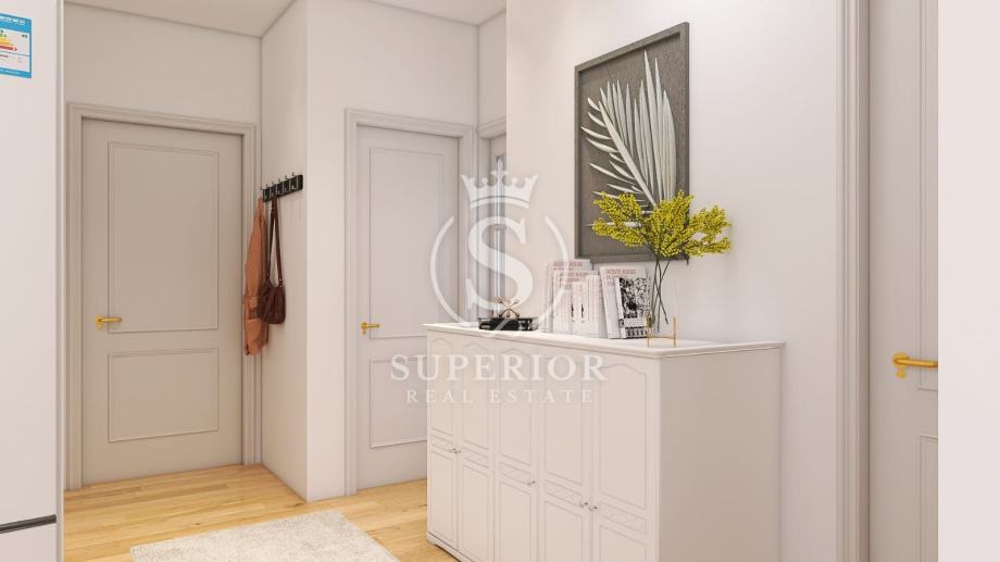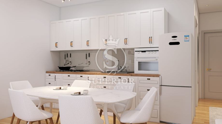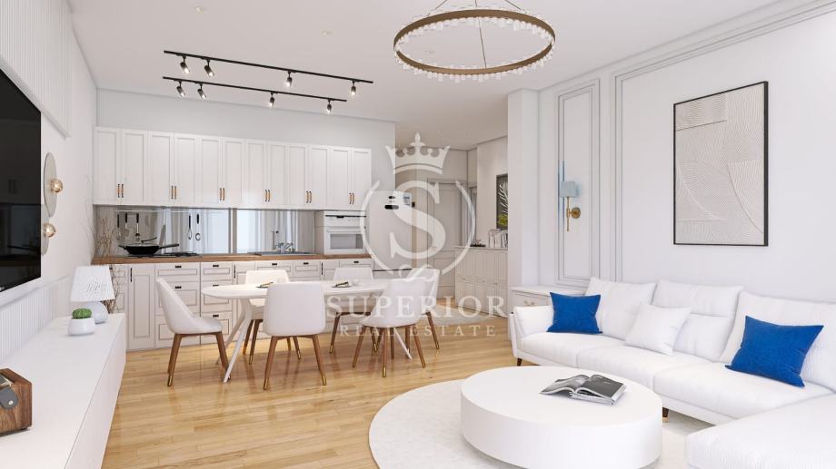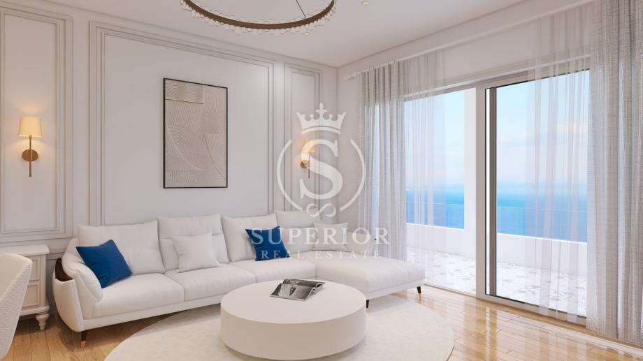 Stan se nalazi na prvom katu, s dodatnim ekskluzivnim pravom korištenja krovne terase od 130 m² s priključcima za jacuzzi – savršen prostor za opuštanje, druženje i uživanje u pogledu koji nikada ne dosadi.