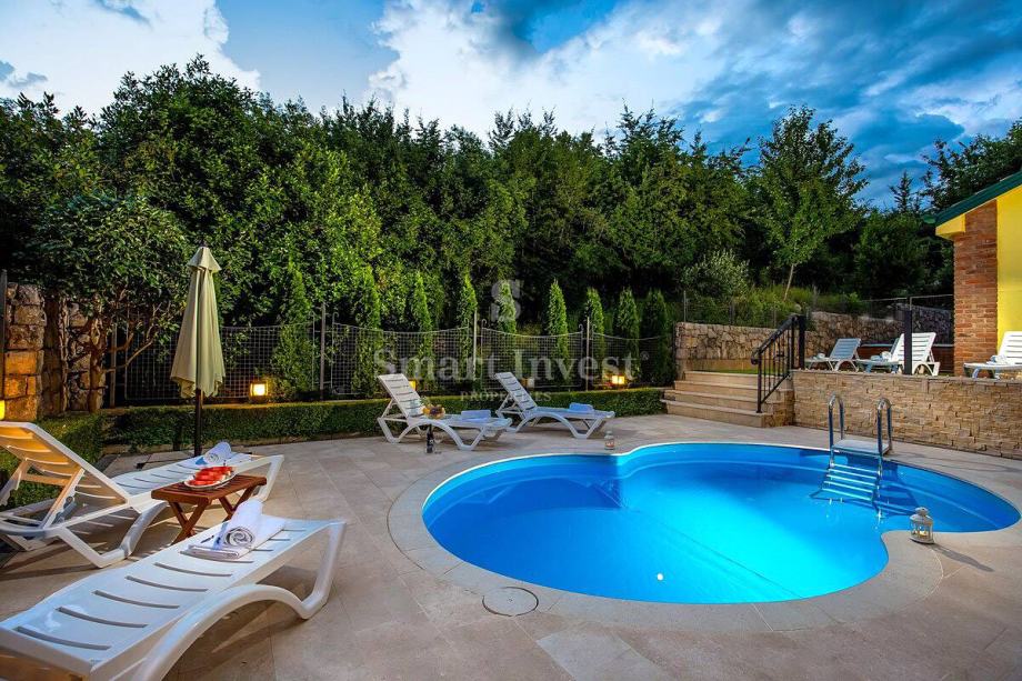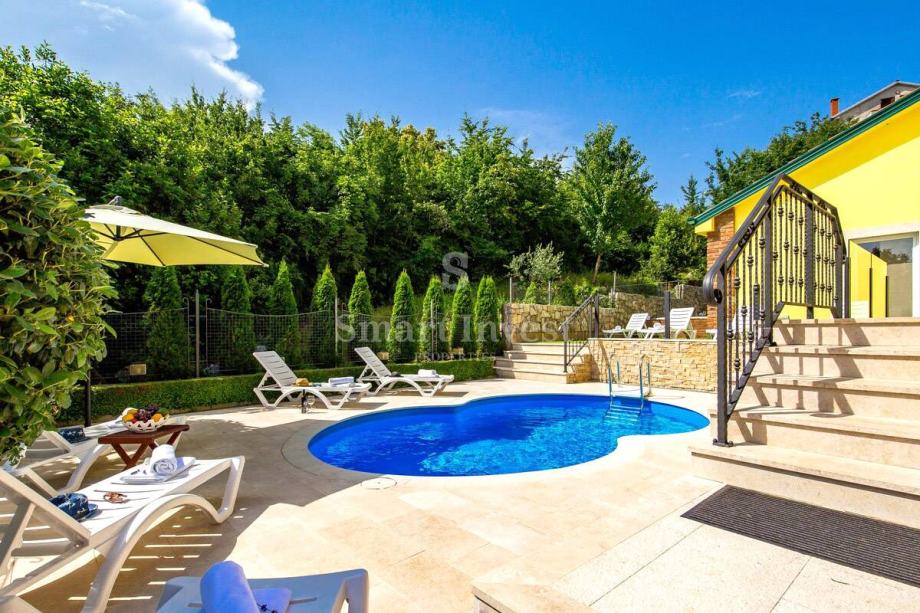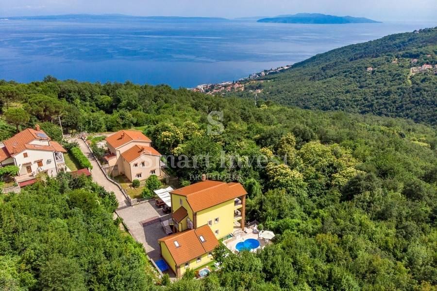 OPATIJA okolica, Prodaje se prekrasna samostojeća vila s bazenom, gostinjskom kućom, lijepo uređenom okućnicom i predvinim pogledom na more.