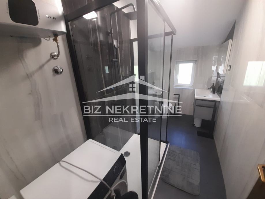 Novoadaptirani stan koji se sastoji od ulaznog hodnika, kupaonice s wcom, kuhinje s blagovaonom s izlazom na balkon, spavaće sobe i dnevnog boravka s izlazom na balkon južne orijentacije.