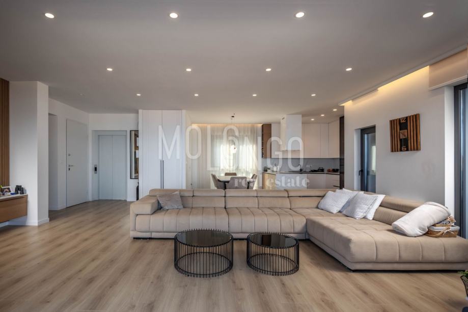 Penthouse se sastoji od hodnika, ostave, dnevnog boravka sa kuhinjom i blagovaonicom, tri sobe, tri kupaonice, nenatkrivene balkona i terase, ukupne korisne površine 183,87m2.