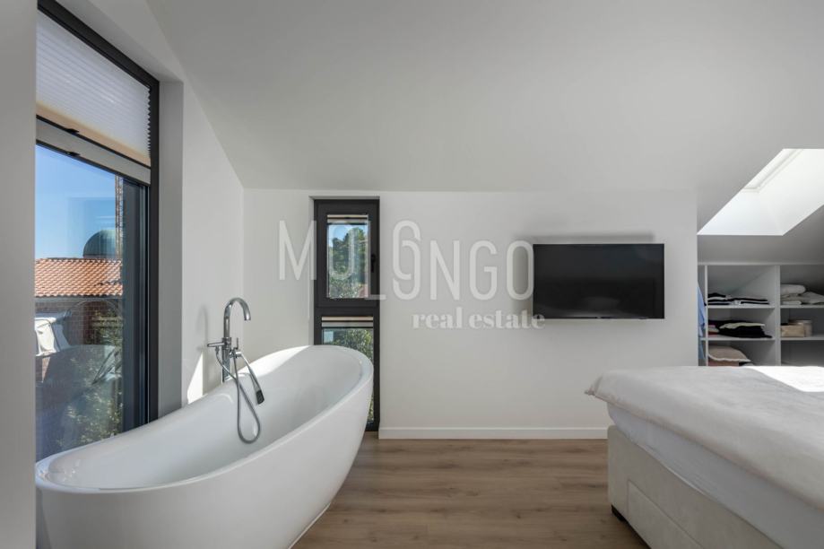 ▪ Oprema je na visokoj razini te je u potpunosti namještena modernim i dizajnerskim namještajem, vrhunska prvoklasna keramika i parket.. Sustav grijanja i hladenja je osiguran dizalicama toplice - coilover sustavom, te podno grijanje.