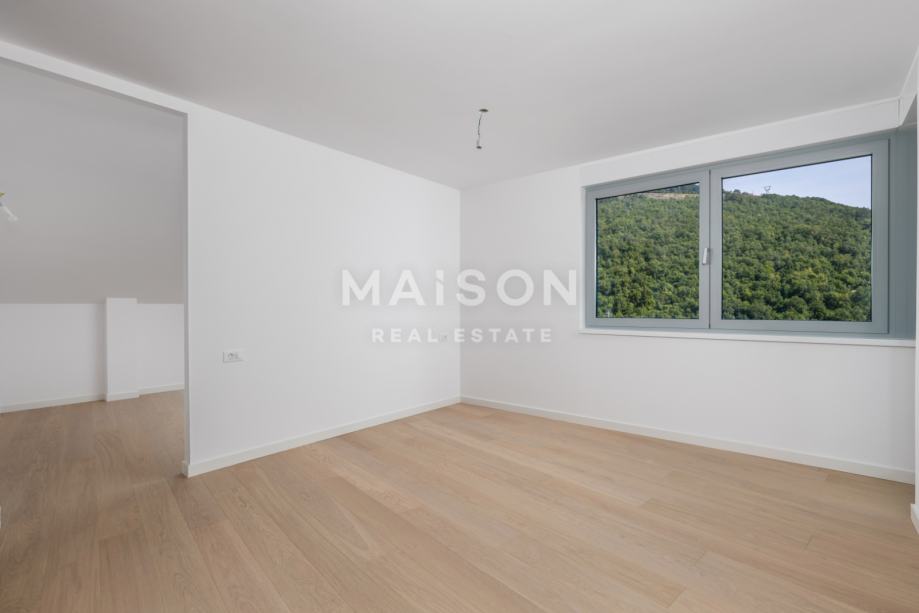 U uređenju interijera korišteni su visokokvalitetni materijali, uključujući troslojni hrastov parket i aluminijsku stolariju, čime je dodatno naglašena suvremenost i elegancija prostora.