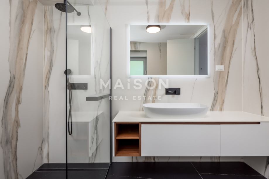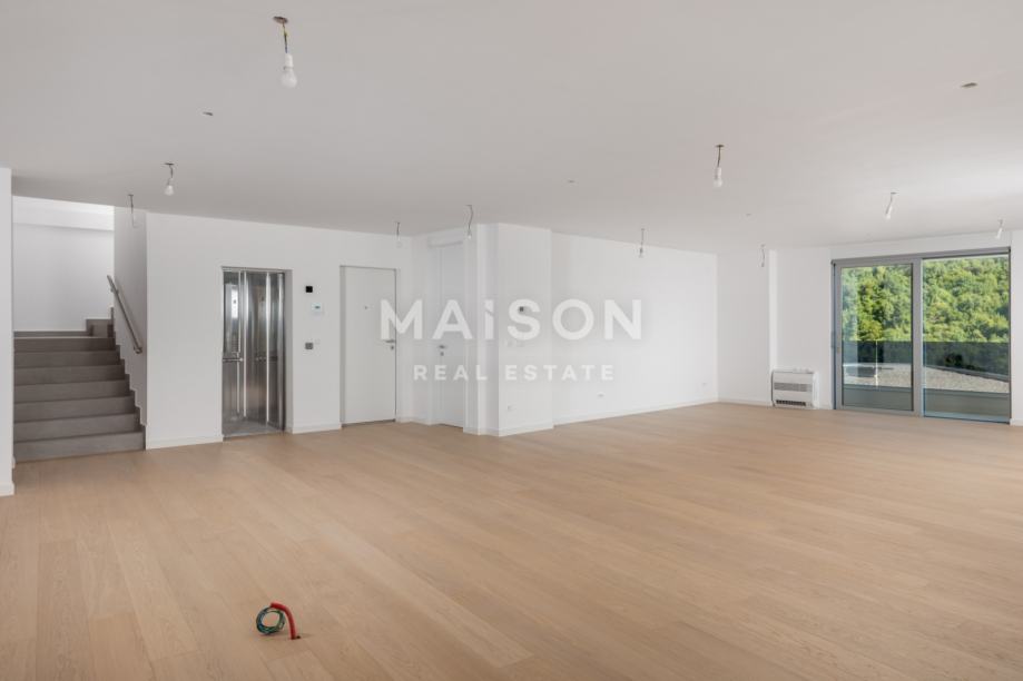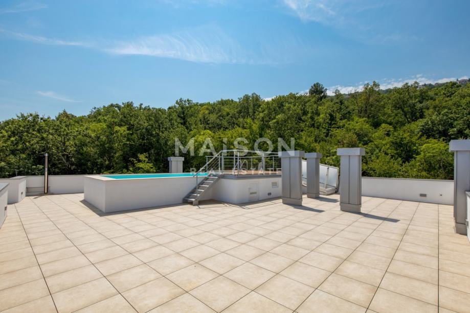 Luksuzni penthouse nalazi se u potkrovlju i na krovu moderne novogradnje i prostire se na ukupno 545,79 m² (bruto). Sastoji se od prostranog dnevnog boravka s kuhinjom i blagovaonicom, tri spavaće sobe, tri kupaonice, garderobe, hodnika, WC-a ukupne površine 233,61 m2. Poseban ugođaj pružaju balkoni i terasa ukupne površine 84,95 m² s kojih se pruža prekrasan pogled na more.