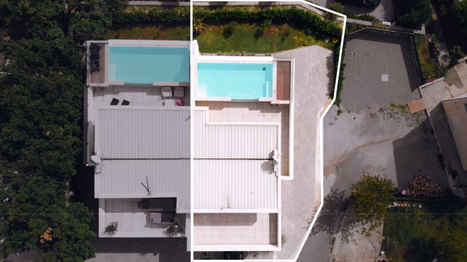 Pogled od 180 stupnjeva na južnu stranu s pogledom na more pruža se sa čak 3 terase, dok je dodatna terasa sa sjeverne strane zamišljena kao zona za opuštanje ili pak za roštilj i druženje.