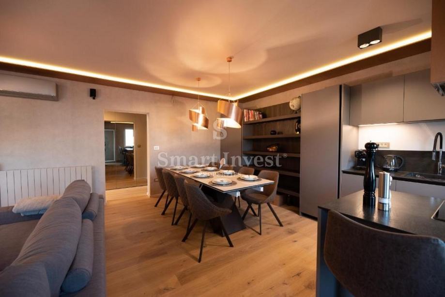 U suterenu se nalazi 2S+DB stan od 96 m2, dok se u prizemlju i na 1. kau nalaze 2 stana, 4S+DB, površine 152 m2 i 156 m2. Svi stanovi su moderno uređeni te vrhunski opremljeni.