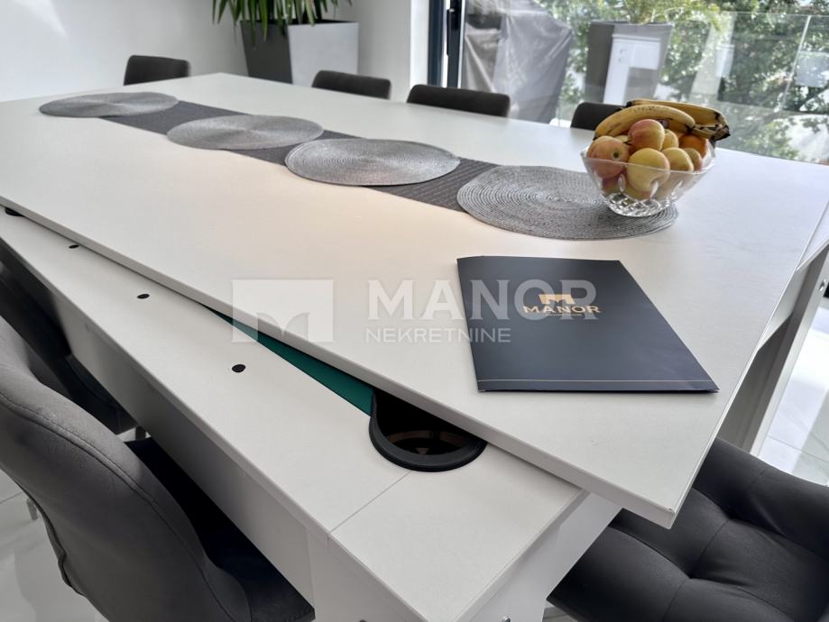 Villa se proteže na tri etaže i 210 m2 stambene površine. U samome prizemlju nekretnine smještene su dvije spavaće sobe s en suit kupaonicama, TV-om i klima uređajem te soba za zabavu sa stolom za stolni tenis.