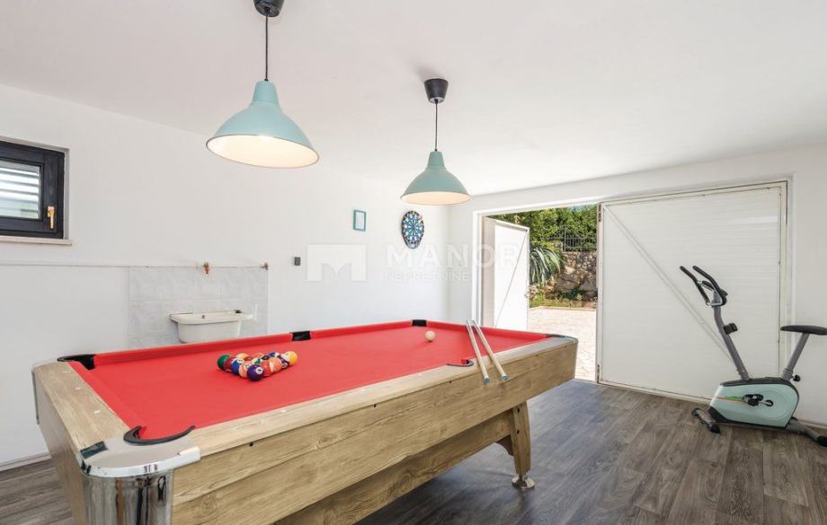 U sklopu okućnice nalazi se bazen, jacuzzi, sunčalište, vanjski tuš i wc, igralište za djecu, uređen mediteranski vrt i više parkirnih mjesta.
