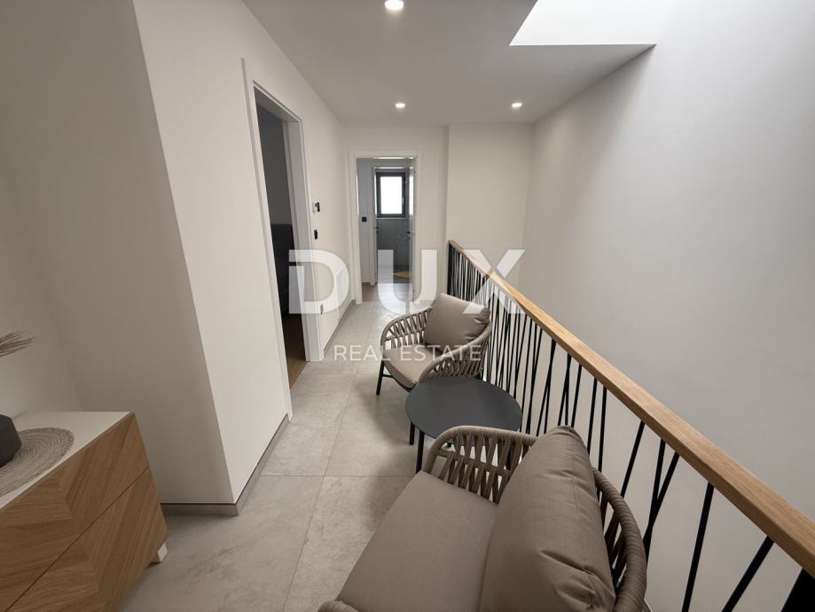 Na katu se nalaze tri spavaće sobe, svaka s vlastitim kupatilom, a još je na katu terasa južne orijentacije s pogledom na more.