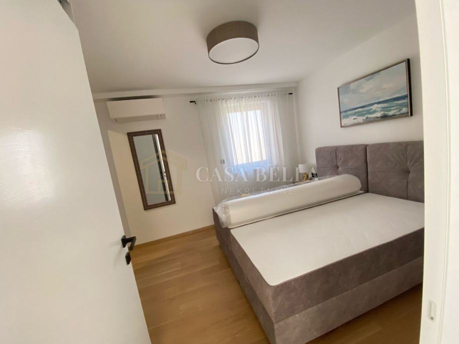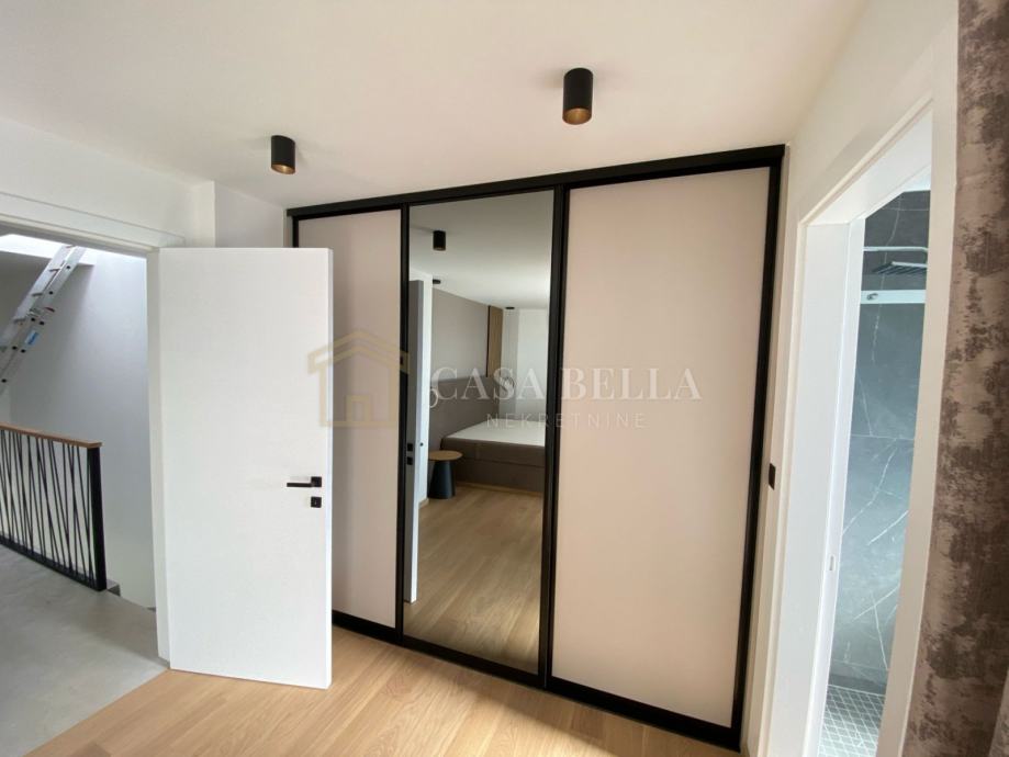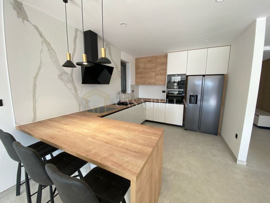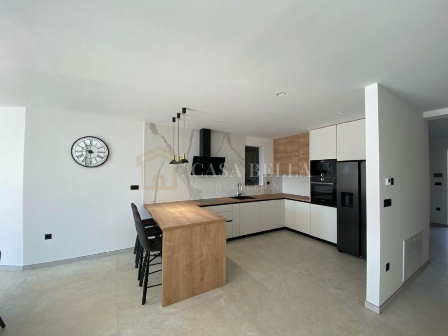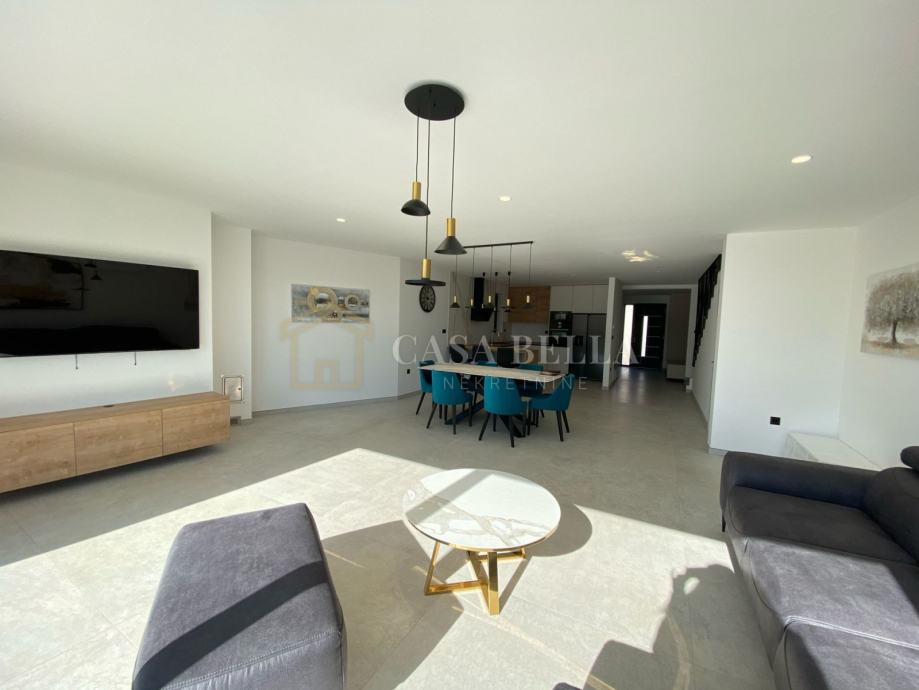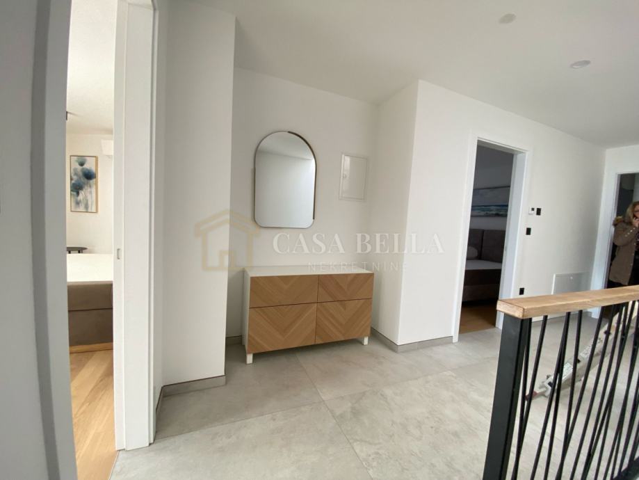 Villa se prostire na dvije etaže. U prizemlju ćete pronaći prostrani dnevni boravak povezan s kuhinjom i blagovaonicom, u otvorenom konceptu koji potiče zajedničko uživanje. Također, ovdje se nalazi spavaća soba s vlastitim kupatilom i garderobom, kao i zaseban nužnik. Kat sadrži dvije dodatne spavaće sobe, svaka sa svojim kupatilom i garderobom, te hodnikom i terasom južne orijentacije koja nudi prekrasan pogled na more.