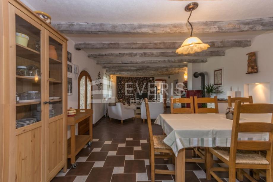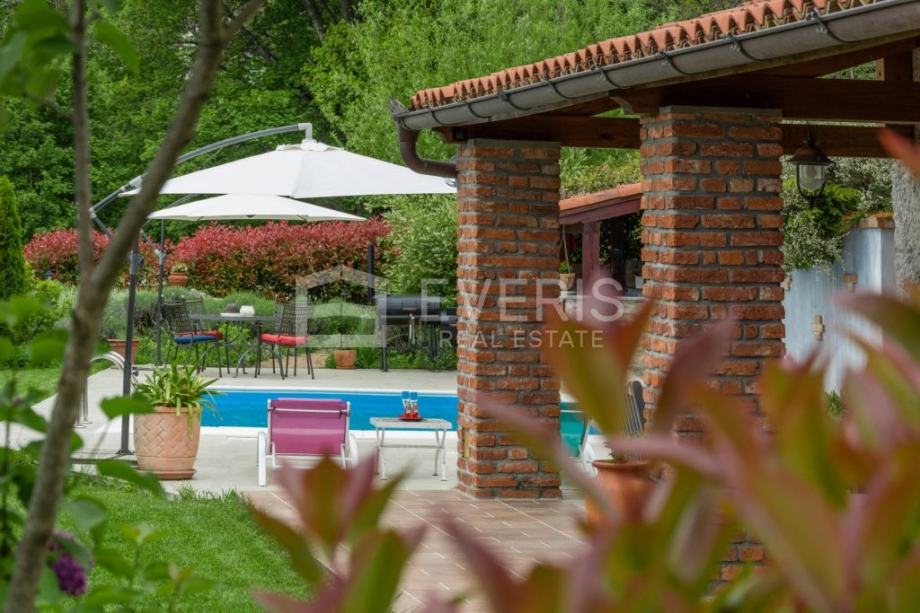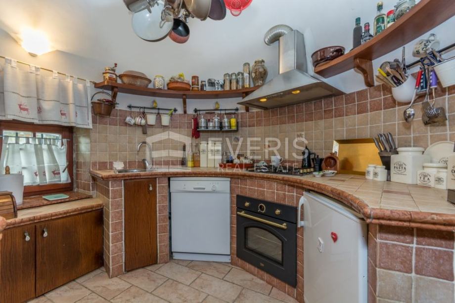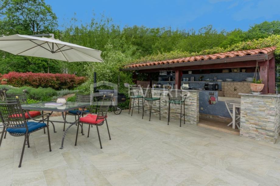 U sklopu okućnice nalazi se bazen dimenzija 6x4 m, sunčalište, potpuno opremljena ljetna kuhinja, roštilj, nadstrešnica za parking, drvarnica, te cisterna za vodu od 30 m3 sa hidroforom.