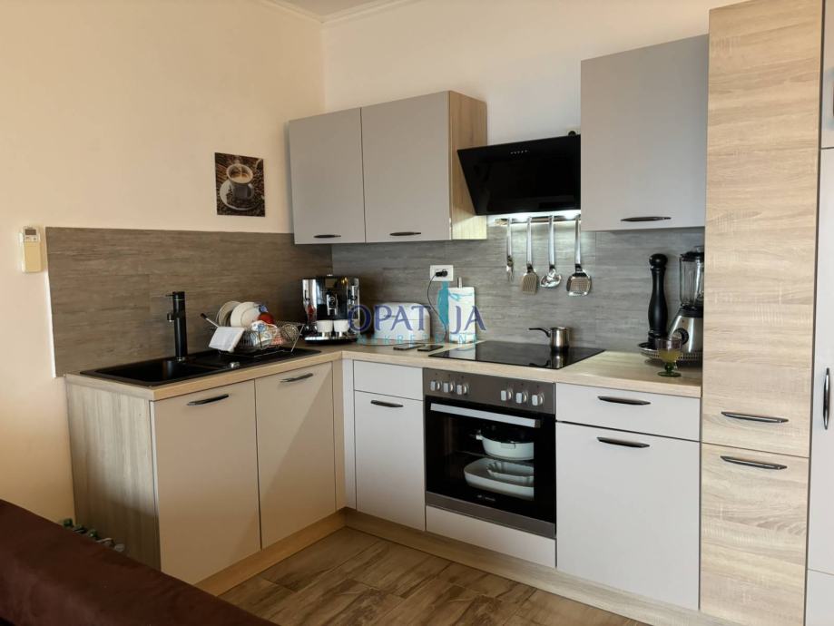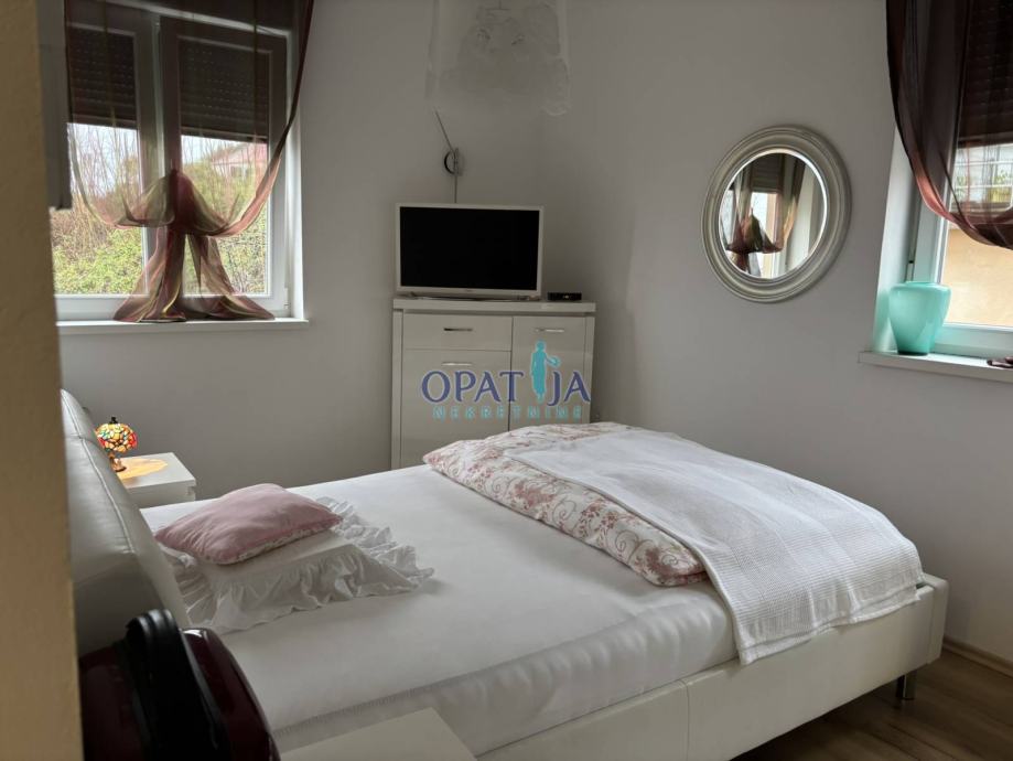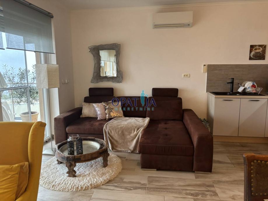 Stan se nalazi u novogradnji neposredno u blizini centra Opatije, nudi komfor uz dva bazena u okućnici zgrade, parking u vlasništvu te izuzetan balkon od 16 m2. Nekretnina se sastoji od dvije spavaće sobe, kupaone te gostinjskog toaleta, open-space kuhinje te dnevnog boravka. Grijanje je na klima uređaj što je sasvim dovoljno jer je stan južno orijentiran i ima veliku staklenu stijenu kroz koju grije sunce. Zgrada je napravljena 2017. godine. Uz stan, pripada i jedno parkirno mjesto te spremište za dodatne stvari.