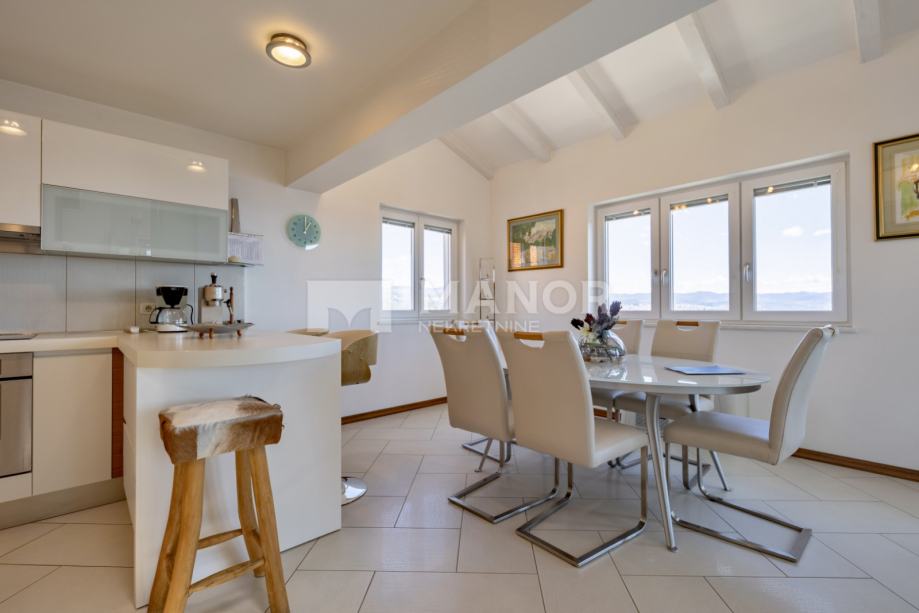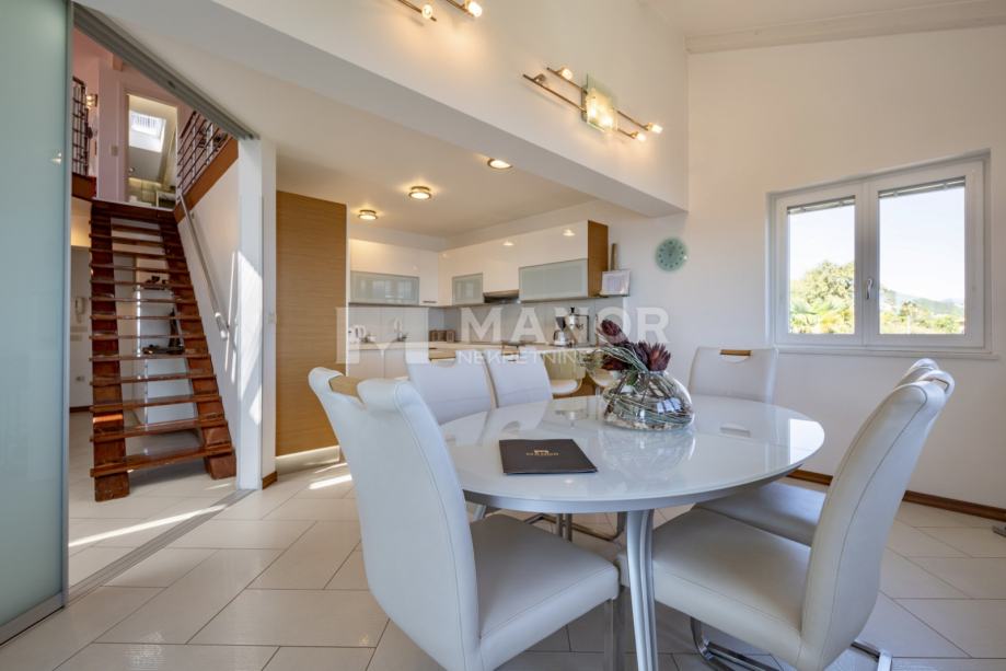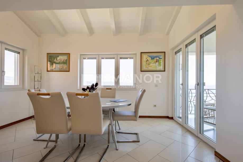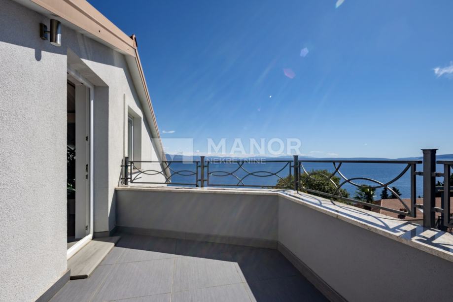 Od četiri opremljene stambene jedinice, tri su moderno uređeni apartmani, dok je četvrta jedinica ekskluzivni penthouse površine čak 222 m². Penthouse se ističe prostranom terasom koja pruža nevjerojatan panoramski pogled na cijeli Kvarnerski zaljev, savršen za uživanje u zalascima sunca i svježem mediteranskom zraku. Vila se nalazi na atraktivnoj lokaciji u Opatiji, u blizini plaža, šetnica i svih gradskih sadržaja. Sve jedinice nude pogled na more s prostranih terasa, a osiguran je i parking za sve stambene jedinice. Uređena okućnica s vrtom idealna je za opuštanje. Postoji i potencijal za dodavanje još jedne stambene jedinice, što dodatno povećava vrijednost i fleksibilnost ove nekretnine. Sve stambene jedinice unutar vile dizajnirane su tako da je unutarnji prostor maksimalno iskorišten, istovremeno pružajući neometan pogled na predivan Kvarner, čime se osigurava jedinstven doživljaj luksuznog življenja na jednoj od najpoželjnijih lokacija.