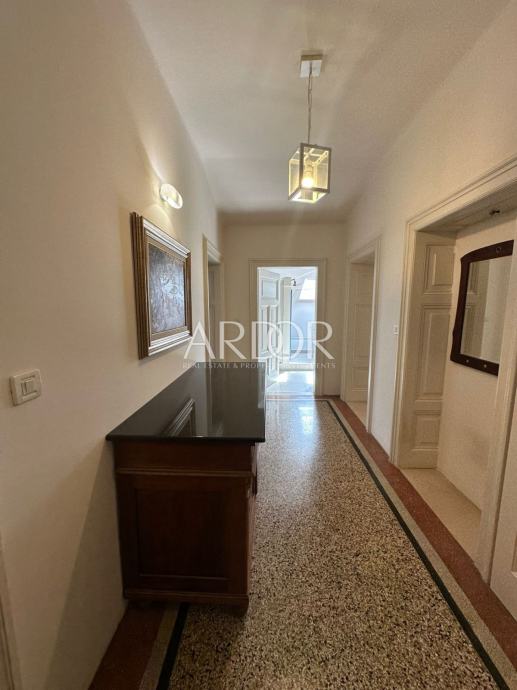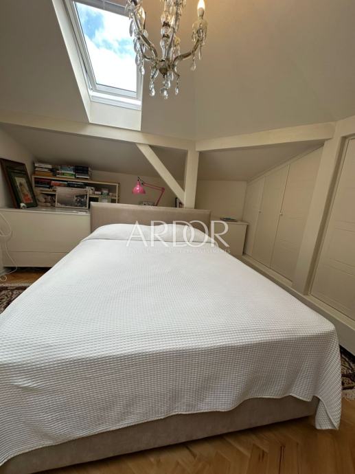 Opatija centar, u prodaju smo dobili predivan, potpuno uređeni i adaptirani gospodski stan površine 139 m², smještenom u lijepoj i održavanoj austro-ugarskoj vili. Sastoji se od ulaznog hodnika, tri spavaće sobe od kojih je jedna veća sa vlastitom kupaonom i garderobom, zasebnog dnevnog boravka, potpuno opremljene kuhinje, gostinjske kupaonice, a pripada mu i drvarnica u prizemlju. Stan je potpuno adaptiran i renoviran 2017. godine. Namještaj je rađen po mjeri, drvena ručno rađena stolarija, Velux krovni prozori sa sjenilima i senzorima za kišu, ugradbeni ormari.. Grijanje na inverter klime i električne radijatore. Zgrada je uredna, ima parlafon, veći dio namještaja može ostati prema dogovoru. Nekretnina se nalazi na izvrsnoj lokaciji, u neposrednoj blizini svih sadržaja, mora i šetnica, idealna za stanovanje ili investiciju.