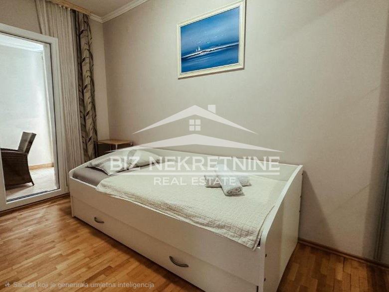 Naime, stan se sastoji od: dvije spavaće sobe, dnevnog boravka, zatvorene terase s djelomičnim pogledom na more te kupaonice.