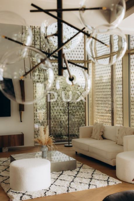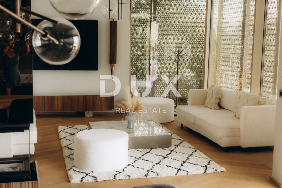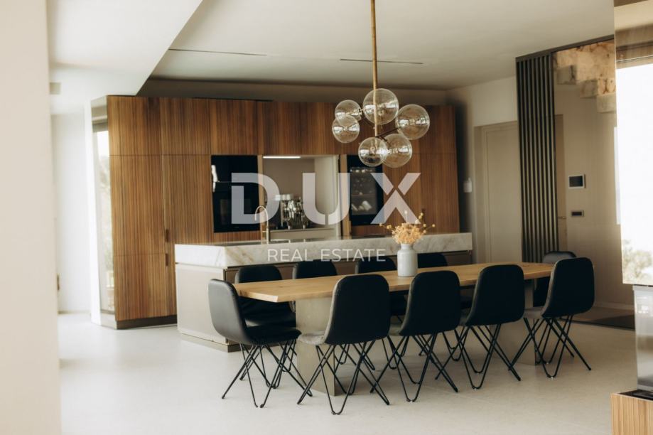 Unutrašnjost vile odiše elegantnim dizajnom i funkcionalnošću. U središnjem dnevnom boravku nalazi se prekrasan kamin, TV i vrhunski Bang & Olufsen zvučni sustav. Dizajnerska kuhinja opremljena je modernim uređajima i otokom koji poziva na zajedničko kuhanje i druženje. Pametni sustav za upravljanje domom pruža zvuk u svakoj prostoriji, što dodatno doprinosi luksuznom iskustvu boravka.