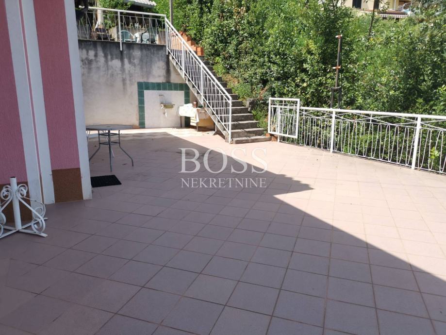 Opatija, samostojeća kuća na lijepoj i mirnoj lokaciji, sastoji se od 3 etaže, u prizemlju je apartman od 80m2, 2S+DB, s posebnim ulazom. Na katu su dva apartmana od 40 m2, također s posebnim ulazom. U potkrovlju je još jedan apartman od 80m2 s posebnim ulazom. Kuća ima dosta balkona i terasa tako da svaki apartman ima svoj privatni dio s prekrasnim pogledom na more, Opatiju i Kvarnerski zaljev. Sa zadnje strane kuće nalazi se i lijepi vrt koji se može urediti po vlastitoj želji kupca kao bazen ili jacuzzi. Kući pripada i garaža od 36m2 s kupaonom i parkingom ispred garaže. Kuća je idealna za turistički najam ili miran obiteljski život te se nalazi samo 5-10 min pješke od centra Opatije. Boss, kontakt: 091/379-1010 Dragan
