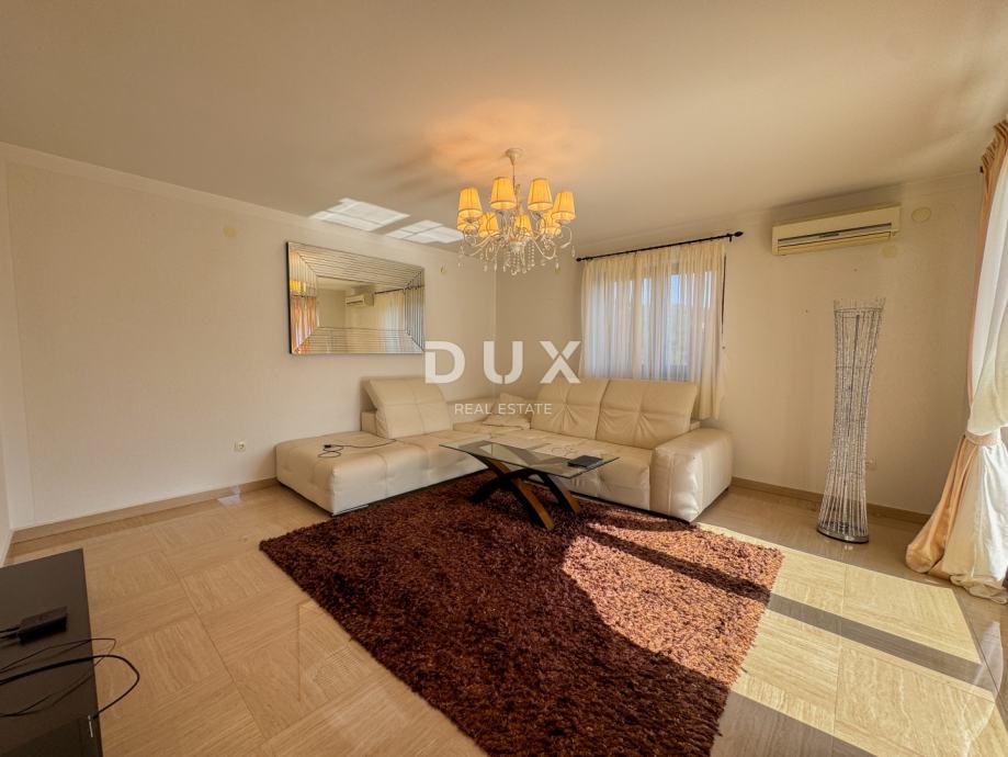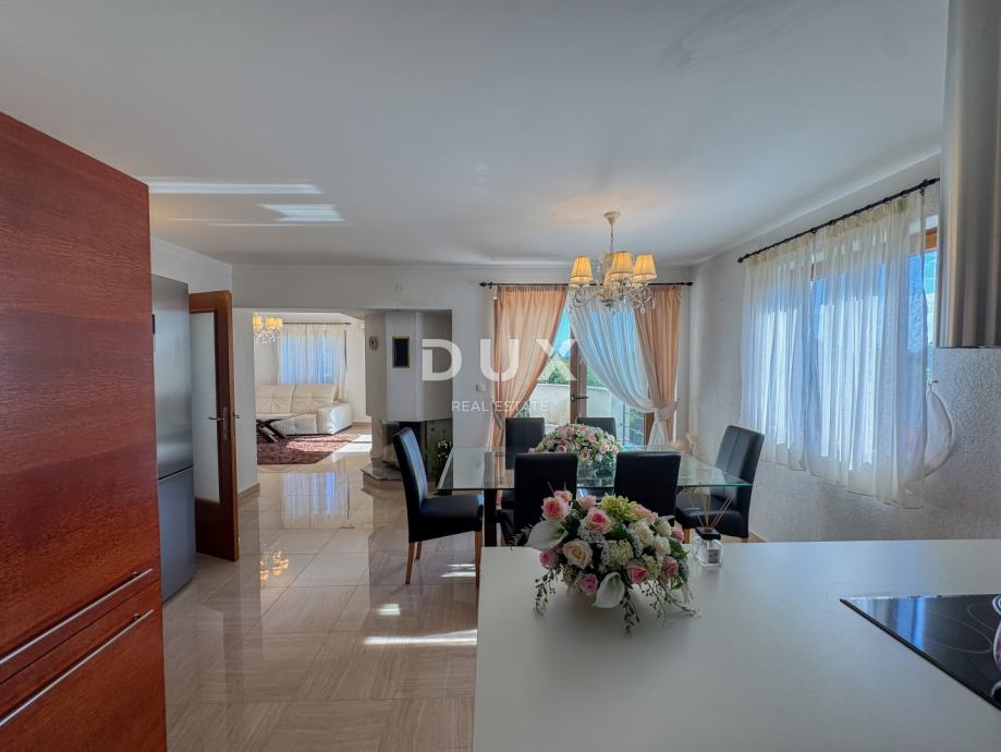 Sastoji se od vrhunske okućnice površine 624 m² na kojoj se nalazi kuća s dvije stambene jedinice. Veći stan koji se prostire na dvije etaže nudi prostrane hodnike, velike sobe, open space dnevni boravak s izlazom na terasu te više spavaćih soba na katu koje također imaju terasu s pogledom na more. U prizemlju kuće nalazi se zaseban apartman s dvije spavaće sobe, koji može biti vrlo koristan i funkcionalan na različite načine. Kuća ima podno grijanje na struju, klima uređaje u gotovo svakoj sobi te pripremu za centralno grijanje. Kuća je novije gradnje i u odličnom je stanju. Namještaj je također u dobrom stanju, no budući vlasnik zasigurno će ga poželjeti osvježiti.