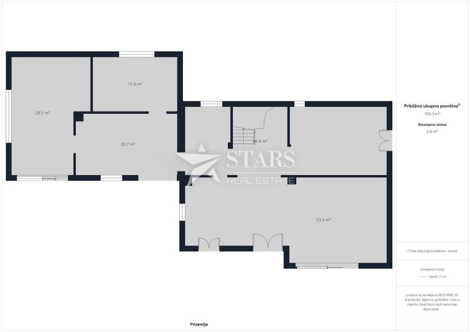 Prizemlje obuhvaća prostrani dnevni boravak povezan s kuhinjom i blagovaonicom, spavaću sobu s vlastitom kupaonicom, gostinjski WC s praonicom te jedna soba koja može biti radna ili još jedna spavaća – kako ti život diktira. .