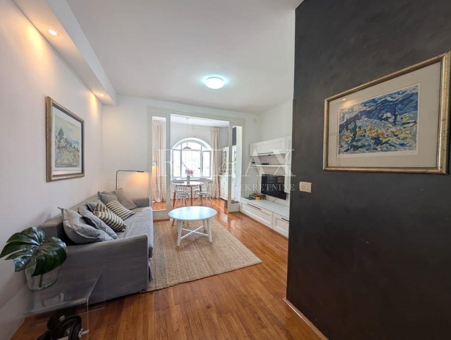 Stan se sastoji od ulaznog hodnika, kupaonice, dnevnog boravka, kuhinje i jedne spavaće sobe. Prostor je potpuno adaptiran prije nekoliko godina i pažljivo uređen, s naglaskom na udobnost i sklad prostora.
