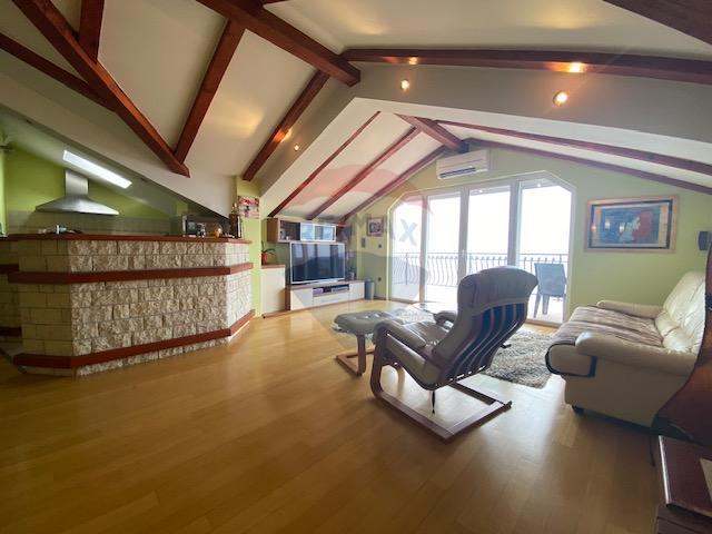 Na mirnoj lokaciji u blizini centra Opatije prodajemo etažu u visokom potkrovlju sa predivnim otvorenim pogledom na cijeli Kvarnerski zaljev.