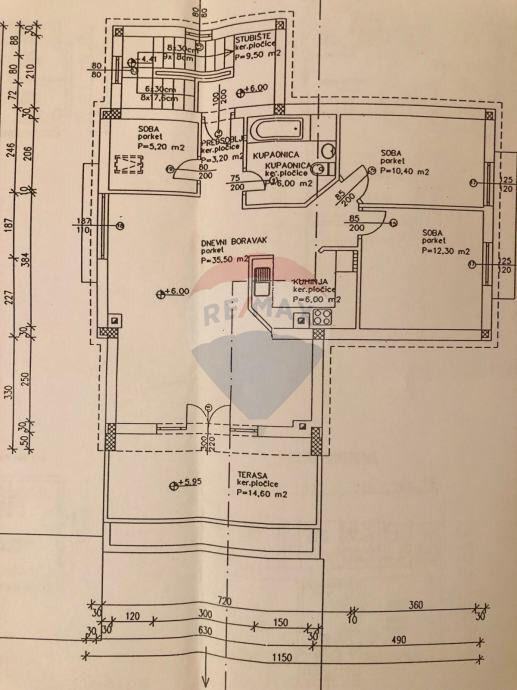 Stan se nalazi na 2. katu novije zgrade i sastoji se od dnevnog boravka, kuhinje, blagovaone, velike terase od 15 m2, tri spavaće sobe, kupaone i spremišta.