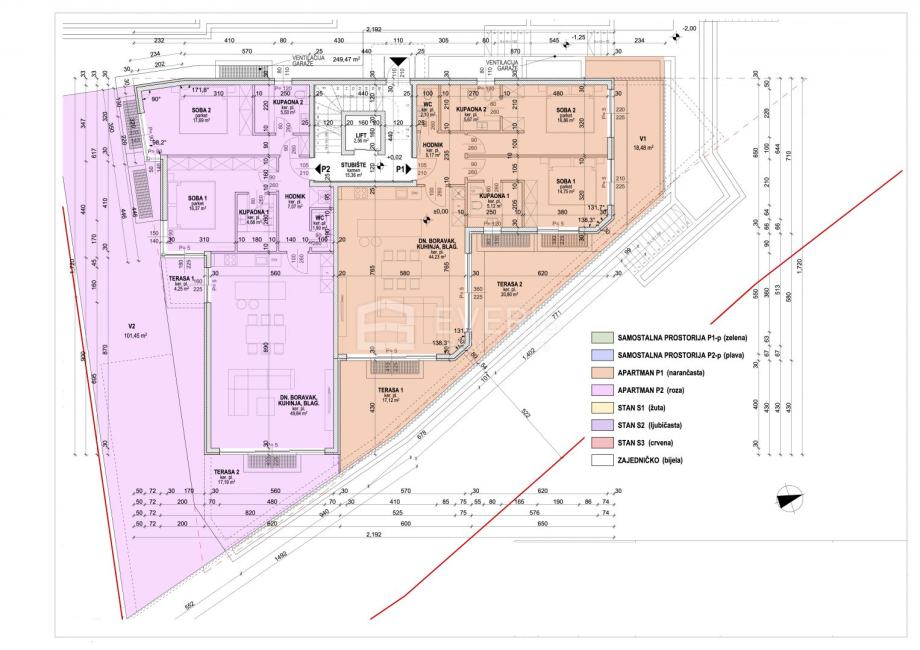 • dvije spavaće sobe, dvije kupaonice, toalet, hodnik, kuhinja, blagovaona i dnevni boravak, unutarnja površina stana: 103,05 m2 / ukupna površina stana: 134.33 m2.
