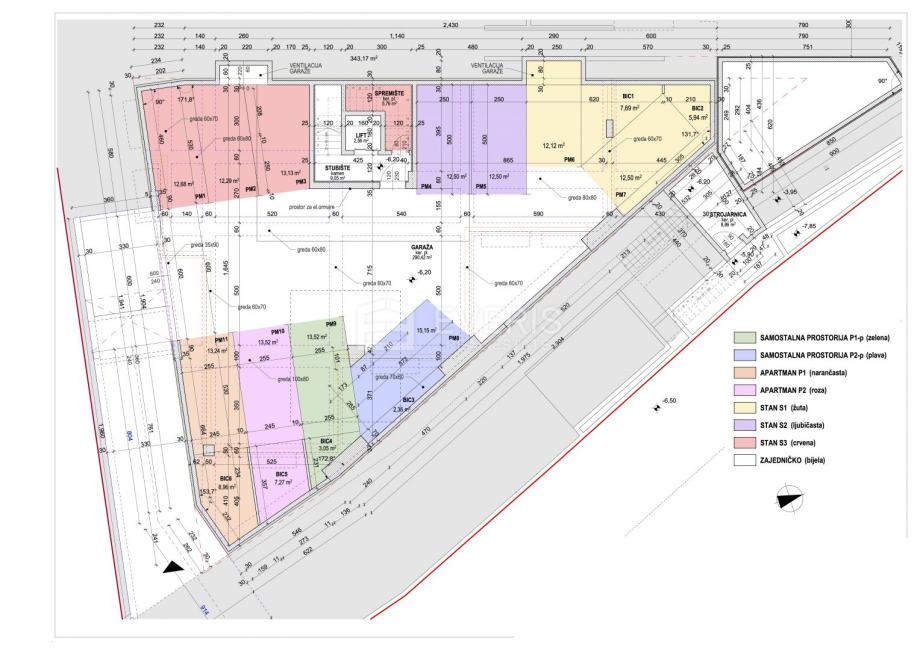 • jedno garažno parkirno mjesto površine 13.52 m2