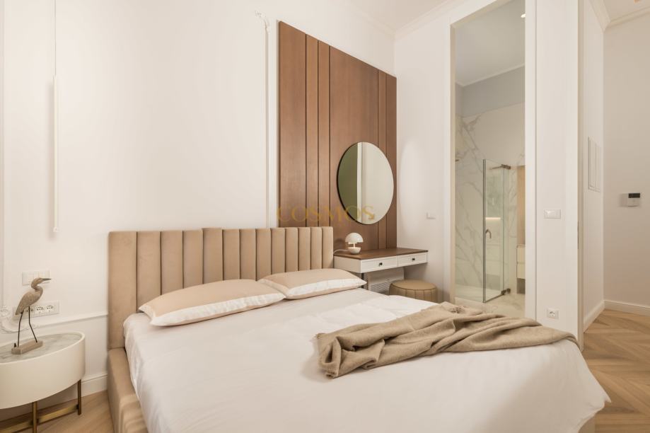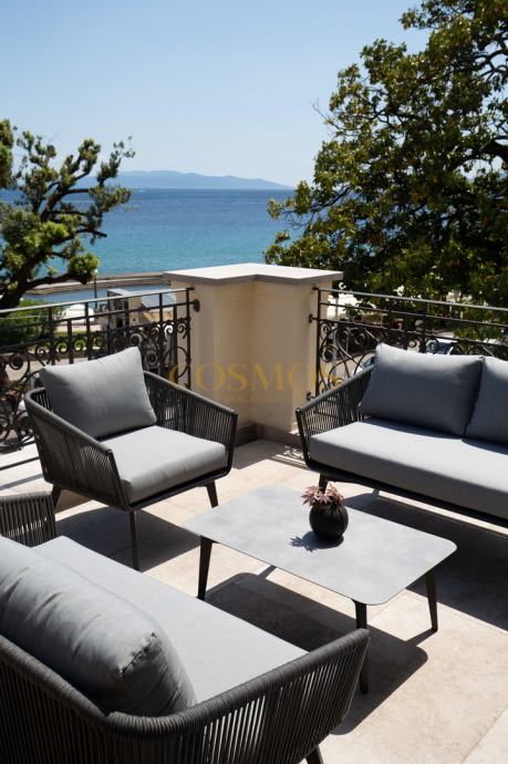 Prodaje se dizajnerski i umjetnički uređeni 2,5-sobni stan u Opatiji, ukupne površine 114,15 m2, smješten na prvom katu ekskluzivne zgrade uz more. Stan se nalazi u prvom redu do mora, pružajući prekrasan pogled i izravan pristup obali, što ga čini savršenim za one koji traže luksuzan životni prostor na atraktivnoj lokaciji.